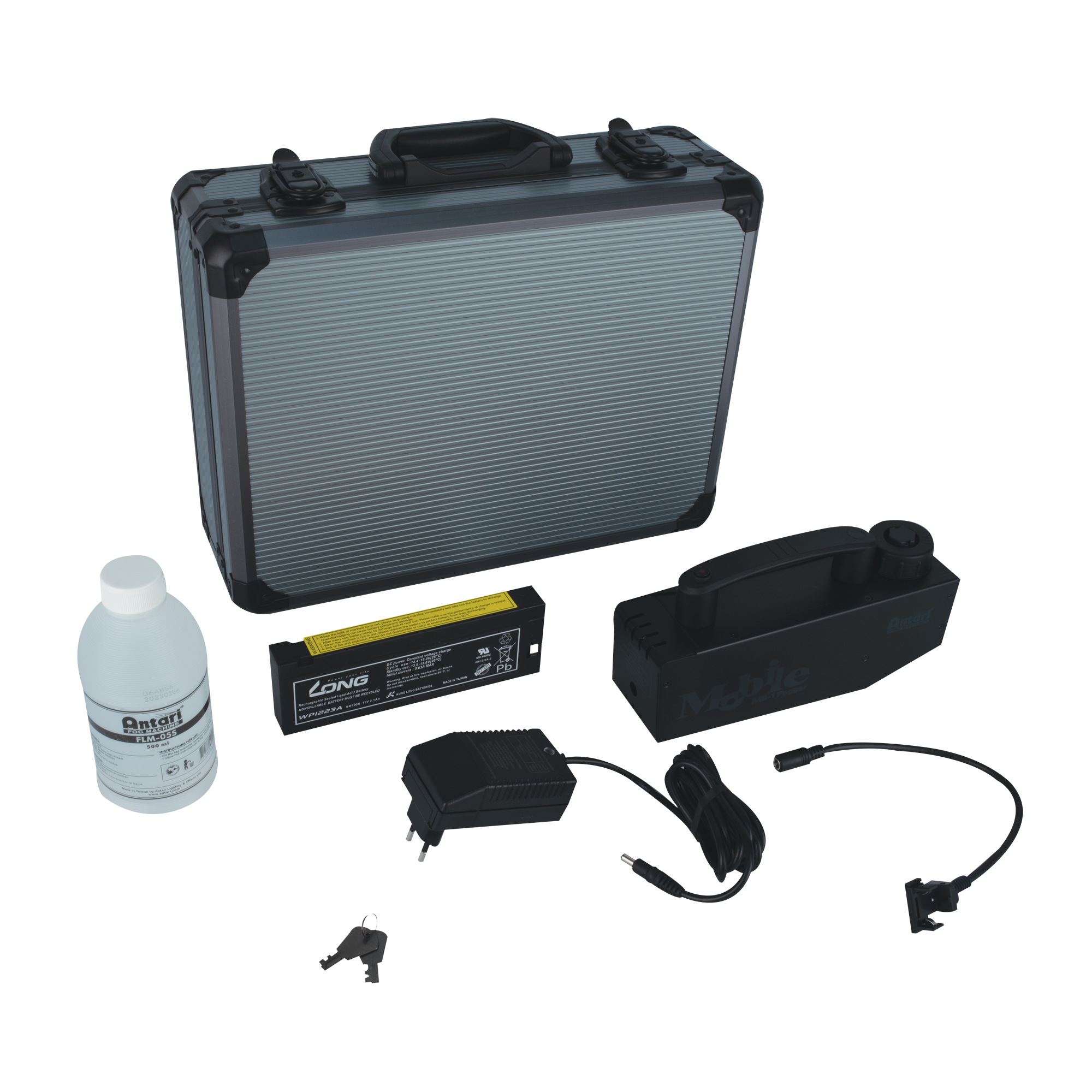 Die Antari MB-1 ist eine kompakte und leichte, batteriebetriebene 75 Watt Nebelmaschine mit integriertem Akku, Batterieladegerät, 0,5 l Nebelfluid und Flightcase, geeignet für den mobilen Einsatz. Ihr kompaktes und tragbares Design eignet sich perfekt für verschiedene Manuell geführte Einsätze und zur Platzierung in und an kleinen Objekten. Bei voller Leistung hält der Akku bis zu 10-12 Minuten durch, sein 110 ml Tank ist nach 100 Minuten Dauerbetrieb leer. Eine Funk- und Timer-Fernbedienungslösung ist optional erhältlich, ebenso wie ein Netzteil mit Dummy-Batterie für den Dauerbetrieb.