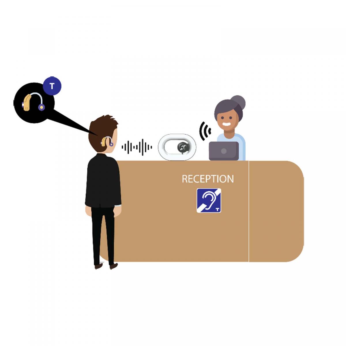 Dieses tragbare Induktionsschleifensystem macht es einfach einen Schreibtisch oder einen Kundenschalter für Hörgeschädigte auszustatten.