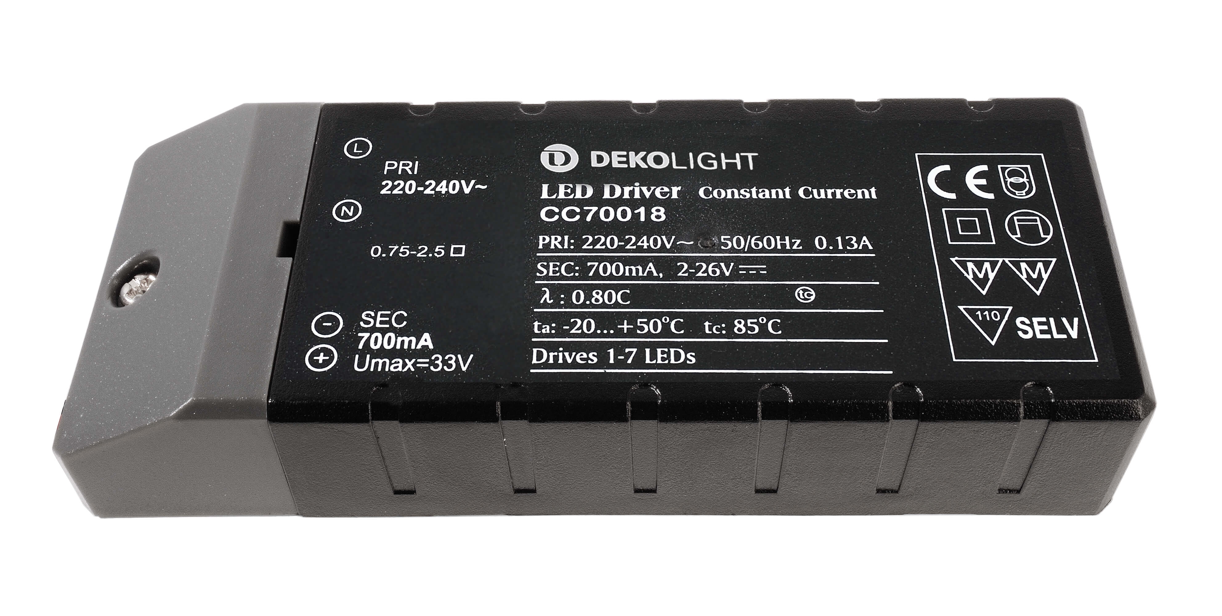 Deko-Light, Netzgerät (CC, DC), BASIC, CC, CC70018/18W, Stromkonstant, 1,4-18,0 W, Eingangsspannung: 220-240 V/AC, Ausgangsspannung: 2-26 V/DC, IP 20