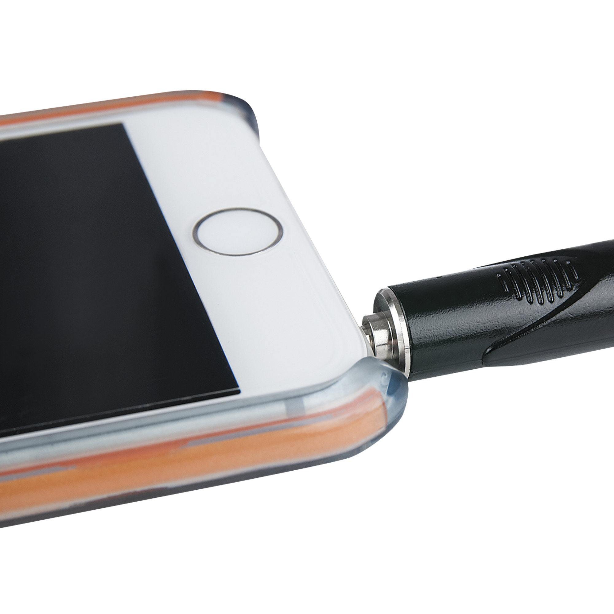 Die FLX46-Kabel sind mit einem speziellen Mini-Klinkenstecker ausgestattet, der es Ihnen ermöglicht, sie an einem mobilen Gerät zu verwenden, während sich dieses noch in seiner Schutzhülle befindet. Aufgrund des versenkten Körpers an der Miniklinkenbuchse können Sie die Miniklinkenbuchse bis zum Anschlag einstecken und Ihre Mobilabdeckung kann den Stecker nicht mehr blockieren.