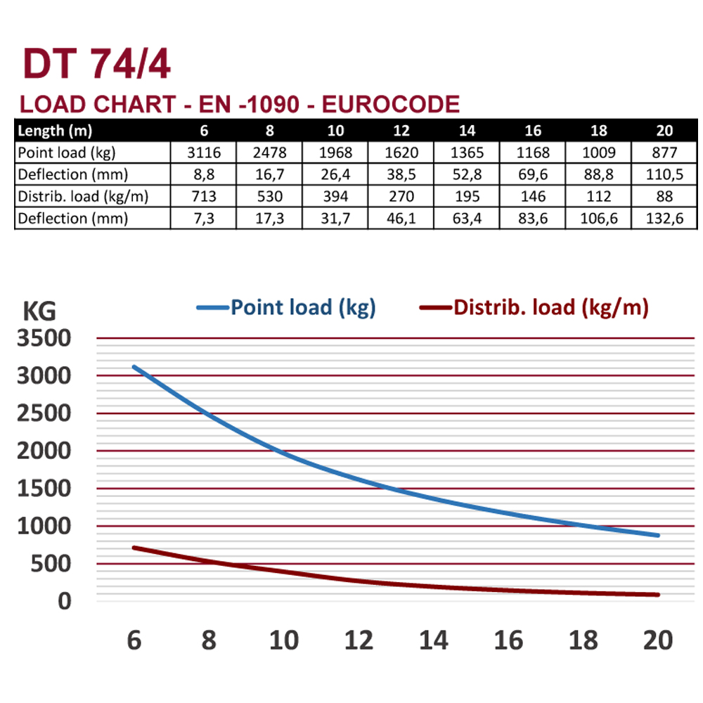 Die DT 74/4 Serie gehört zu unserer "Heavy Truss" Familie und ist eine der größen Hochlast-Traversen unseres Portfolios. Die hohe Tragfähigkeit bei gleichzeitig sehr niedrigem Gewicht zeichnen diese 52,9 x 76,9cm rechteckige Serie mit konischem Verbinder aus. Der Vorteil beim Schnellverbinder-System liegt darin, dass es kraftschlüssig mit dem Gurtrohr abschließt und eine schnelle Montage beim häufigen Auf- und Abbau ermöglicht.