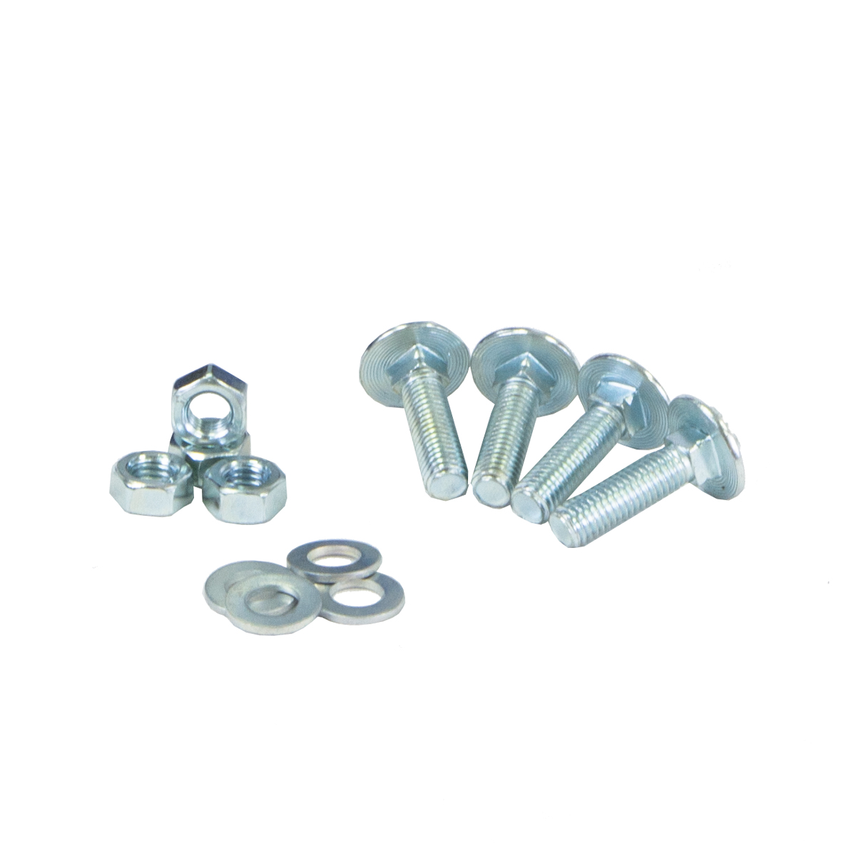 Set bestehend aus vier verzinkten Schloßschrauben 8 x 30 mm mit U-Scheiben und Muttern.