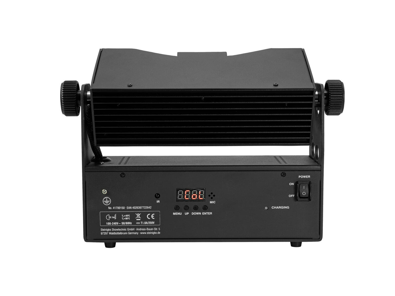 Ansteuerung:Stand-alone; Master/Slave Funktion; Musiksteuerung über Mikrofon; IR-Fernbedienung; DMX; QuickDMX über USB (optional); W-DMX by Wireless Solution über USB (optional); CRMX by LumenRadio über USB (optional)