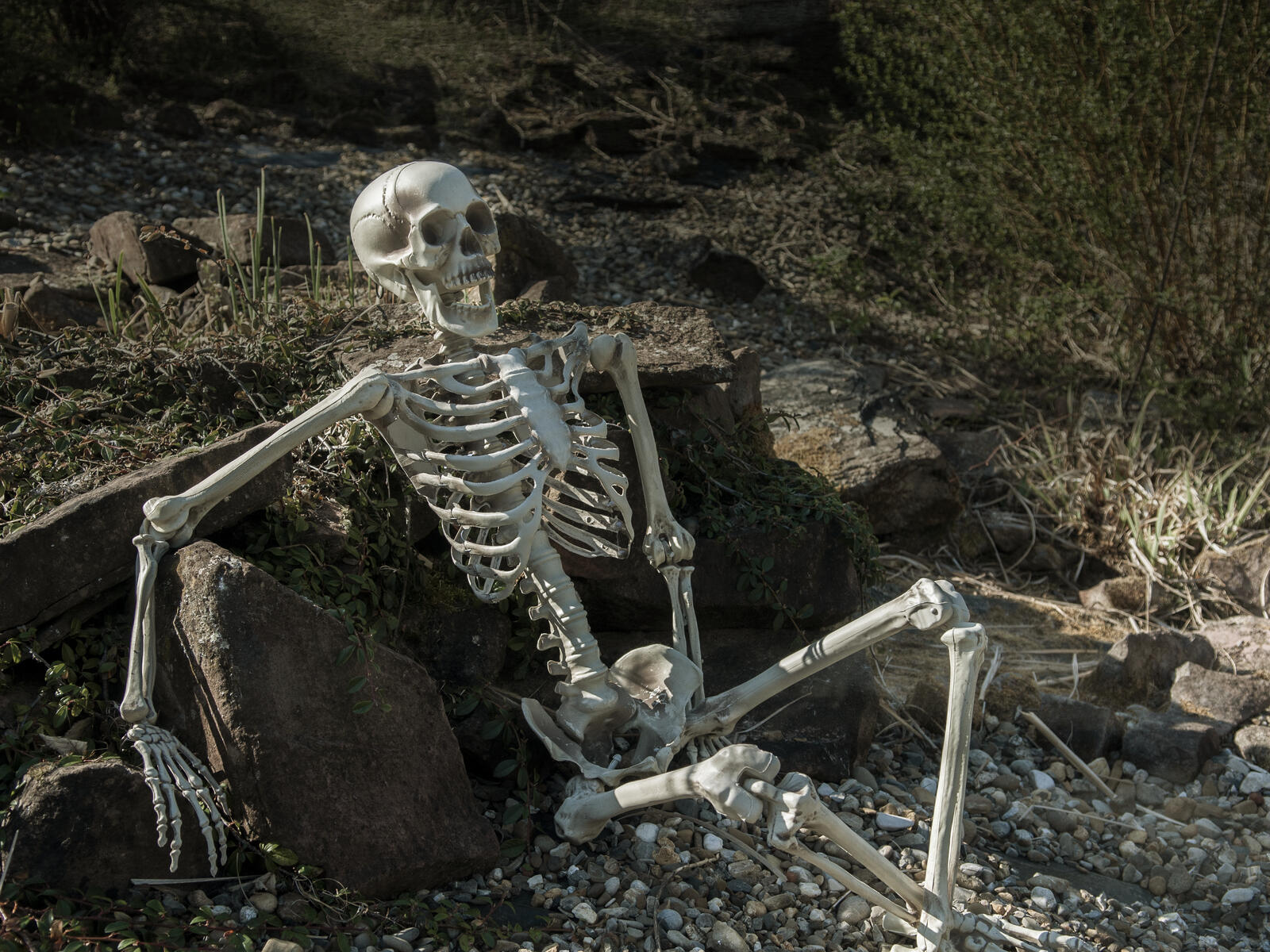 Nicht nur zu Halloween: Ob als Hängefigur, sitzend oder liegend - das klapprige Skelett von Europalms darf auf keiner Mottoparty fehlen. Passen Sie sein Outfit dem Anlass entsprechend an: Mit Spinnenweben und Perücke behängt, oder zerfetzten Stoff- und Kleidungsstücken angezogen, ist der Knochenmann gerne Mittelpunkt im Partygeschehen. Ihre Gäste werden begeistert sein.Das Gerippe ist aus Kunststoff gefertigt und hat eine Größe von ca. 150 cm. Sein Kiefer und die Gliedmaßen sind beweglich - so lässt es sich ganz unkompliziert in der gewünschten Position platzieren.