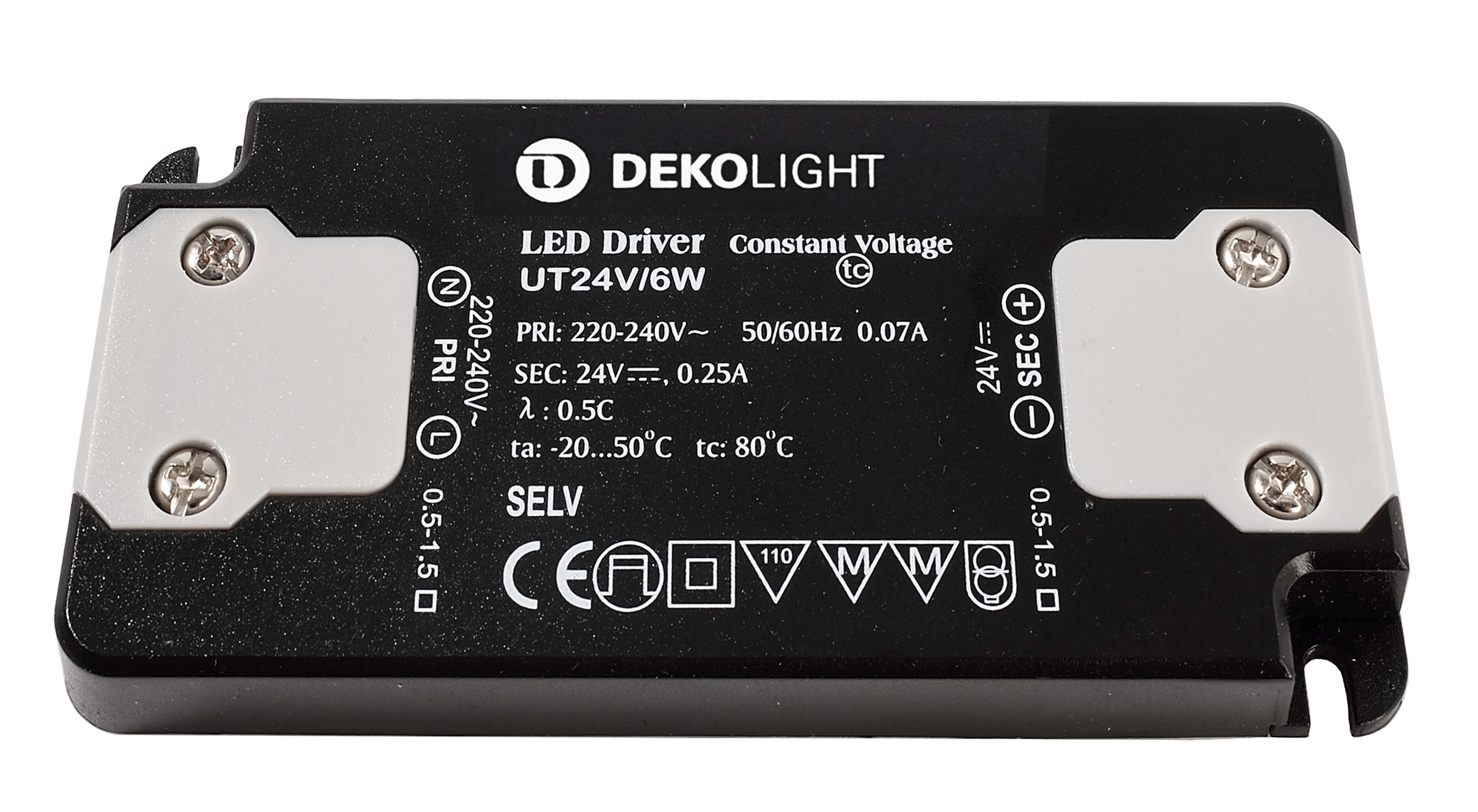 Deko-Light, Netzgerät (CV, DC), FLAT, CV, UT 24 V/6 W, Spannungskonstant, 6.0 W, Eingangsspannung: 220-240 V/AC, Ausgangsspannung: 24 V/DC, IP 20