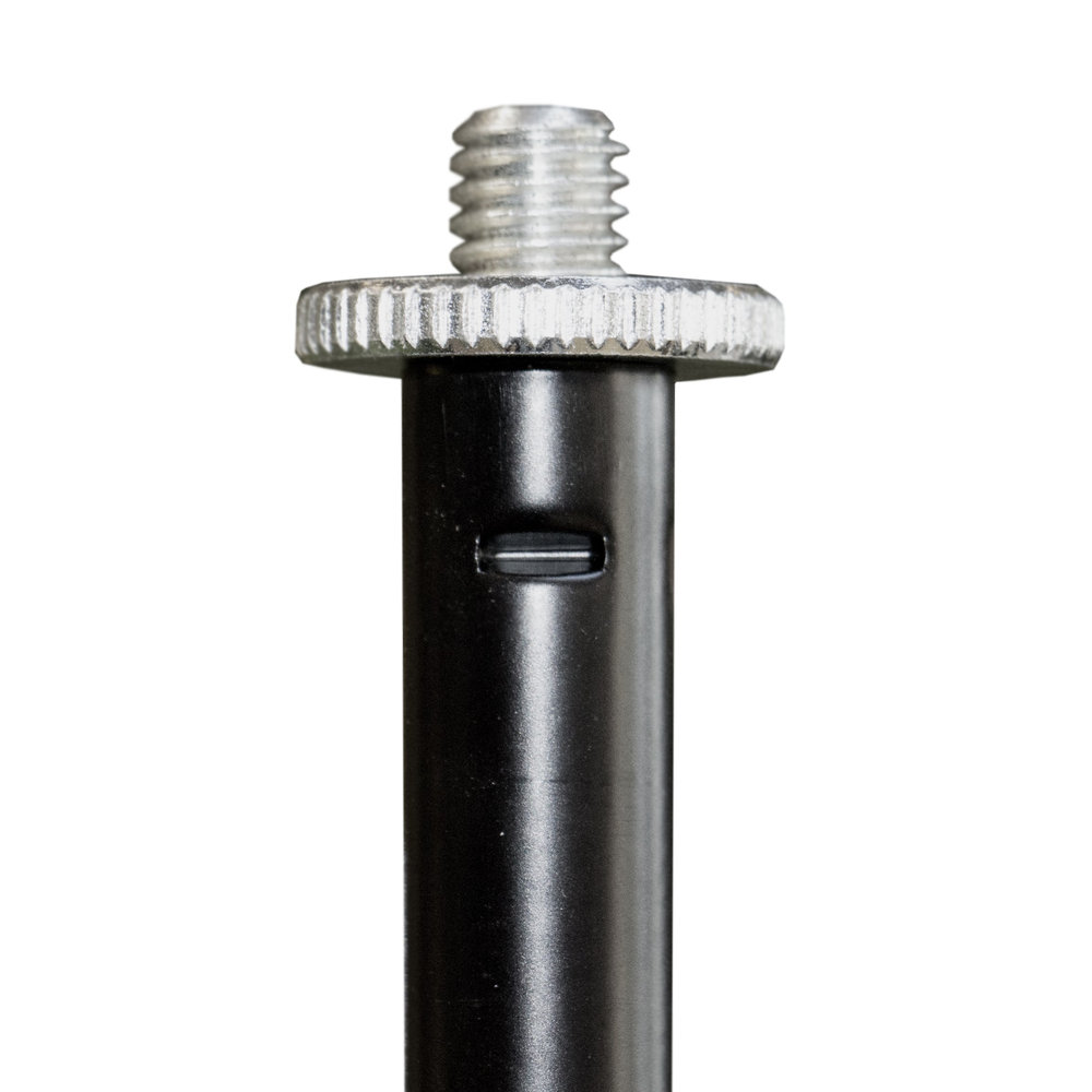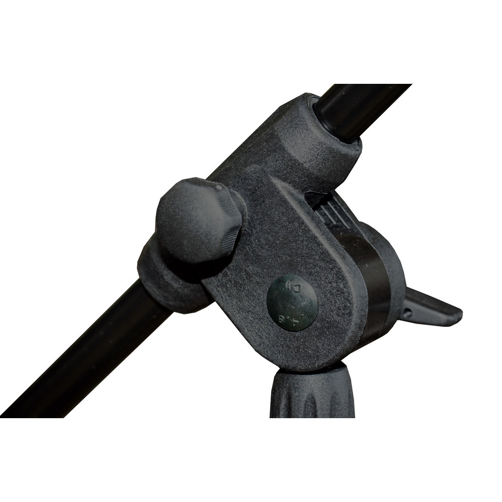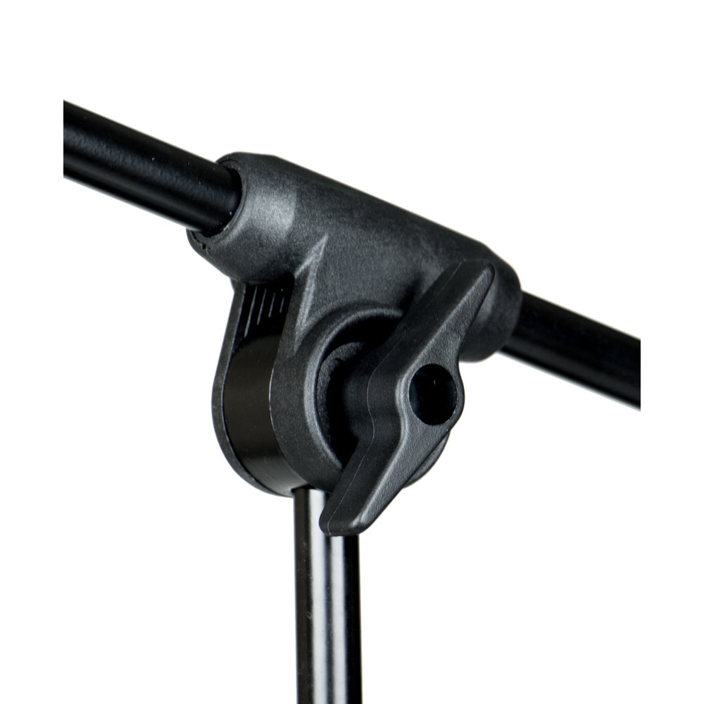 Robustes Mikrofonstativ mit 3/8 Gewinde von HILEC aus Metal und Polyamid. Die Höhe ist von 95 cm bis 148 cm einstellbar, Armlänge 64 cm, bei einem Gewicht von 1,8 kg.