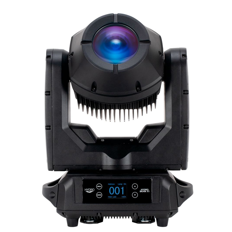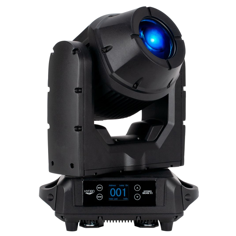 The ADJ Hydro Beam X1 is an IP65 rated professional moving head fixture with a 100W Osram Sirius HRI, 6,000 hour, discharge lamp that produces a razor sharp 3-degree beam. Its compact sizes offers quick movement.