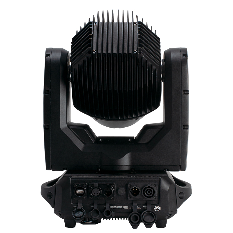 The Hydro Beam X1 has several high performance features such 16-facet circular prism with overlay and an independent frost filter for wash effects. Its fitted with IP65 5-pin XLR In/Out and IP65 Locking Power In/Out connections. It offers a USB port for software updates. All connections are IP65 rated with rubber protective covers.