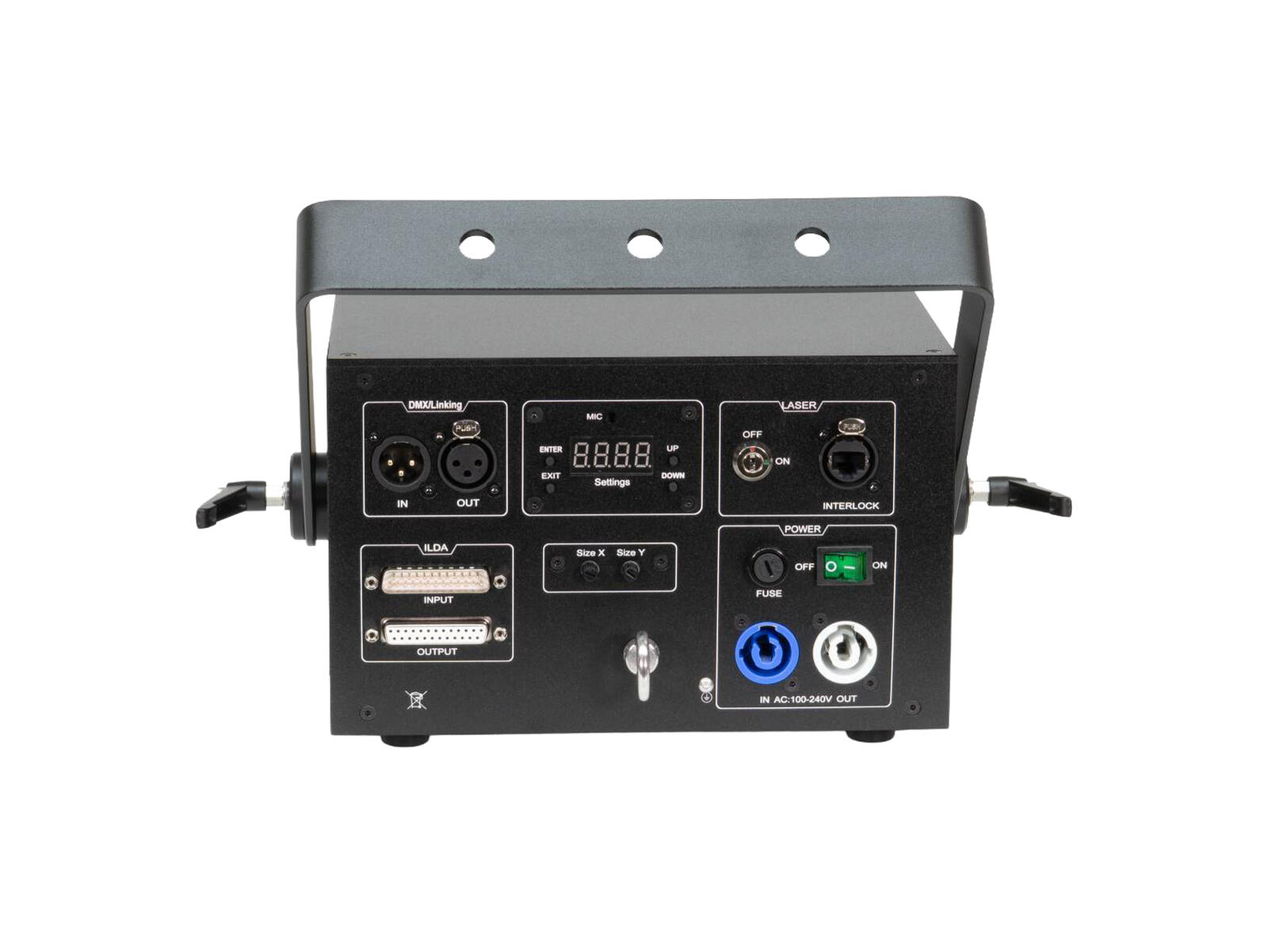 - Ansteuerbar über DMX; ILDA; Stand-alone; Master/Slave-Funktion; Musiksteuerung