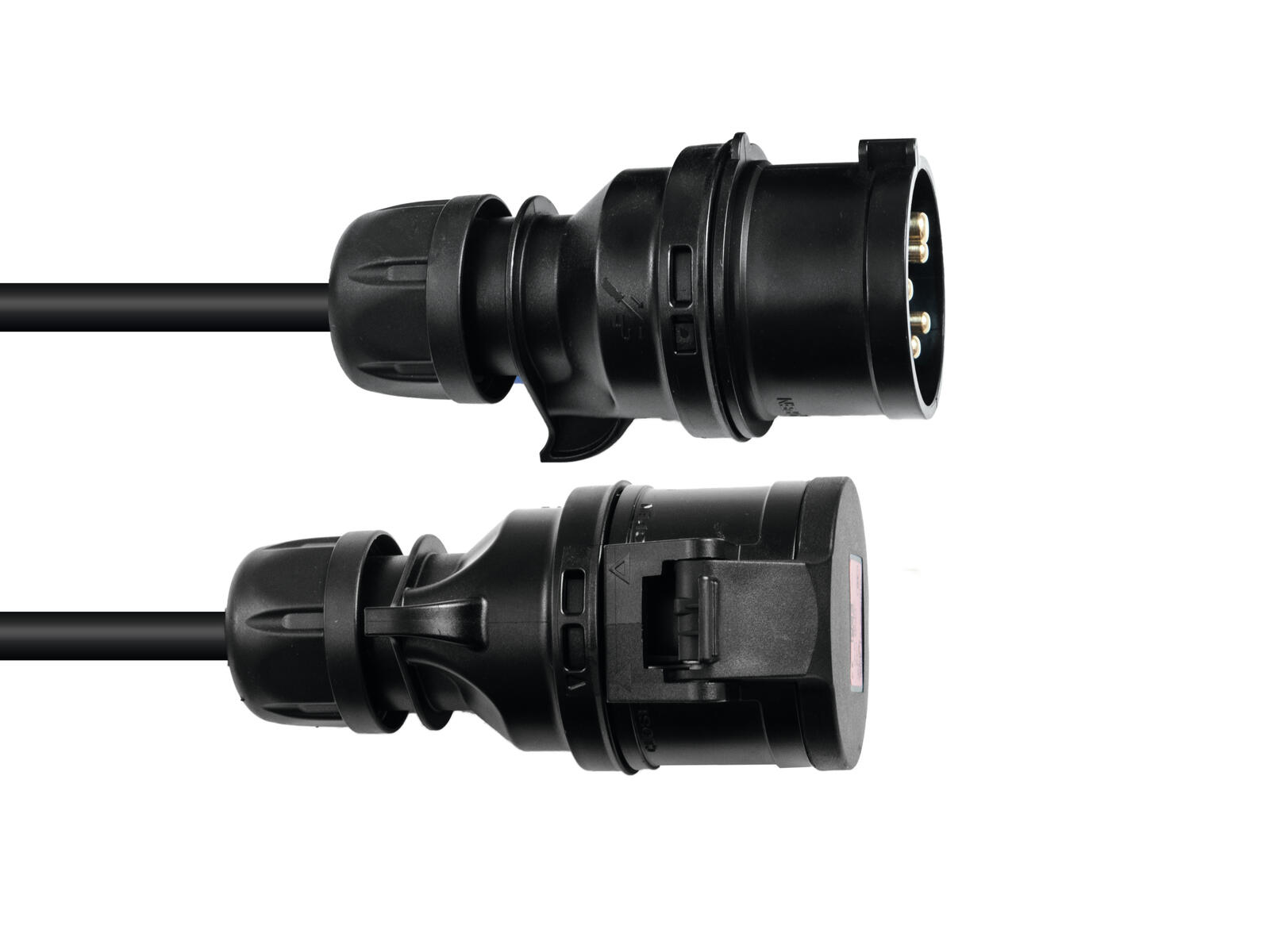 - Schwere Gummischlauchleitung mit anmontiertem PCE Shark CEE-Stecker und -Kupplung