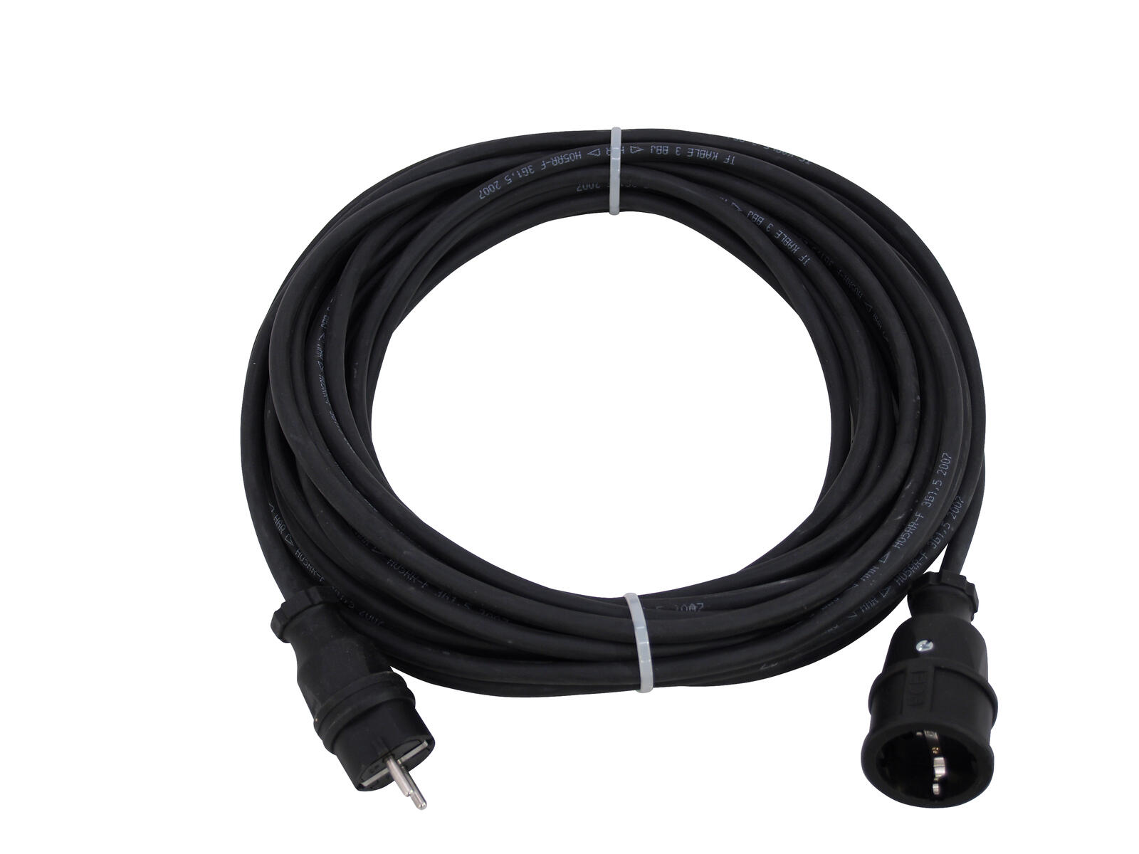 - Schwere Gummischlauchleitung mit anmontiertem Schutzkontakt-Gummistecker und -kupplung