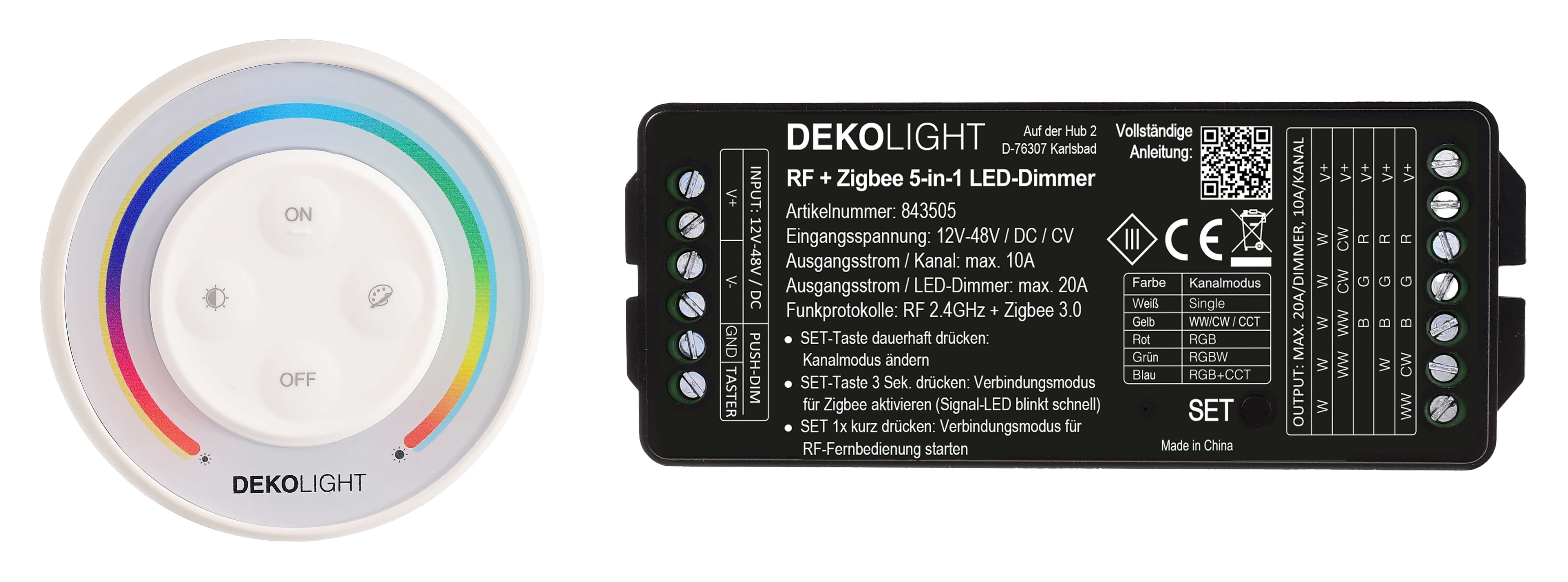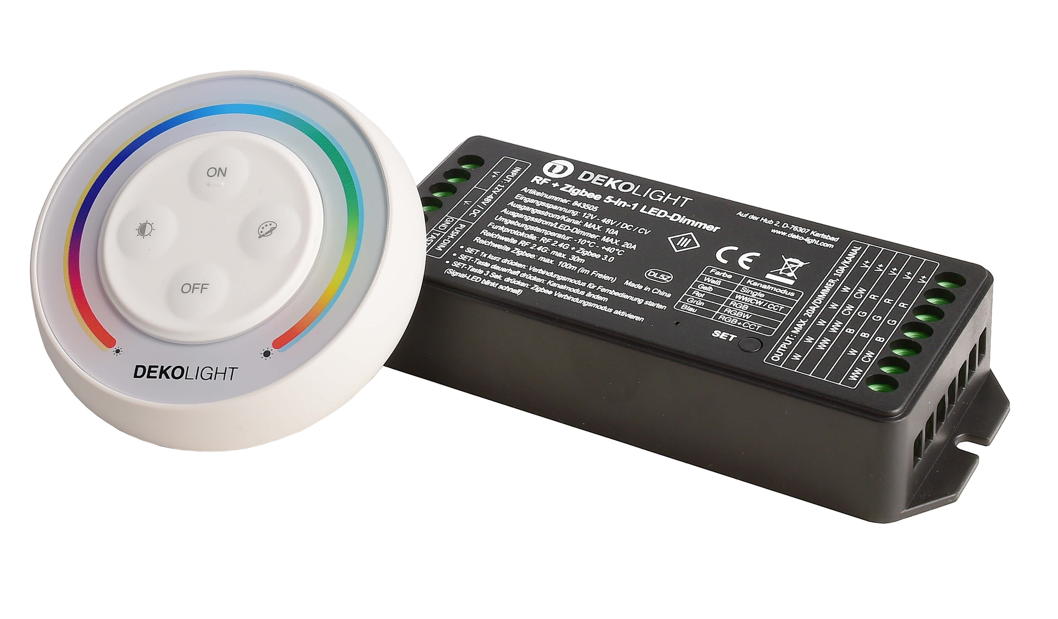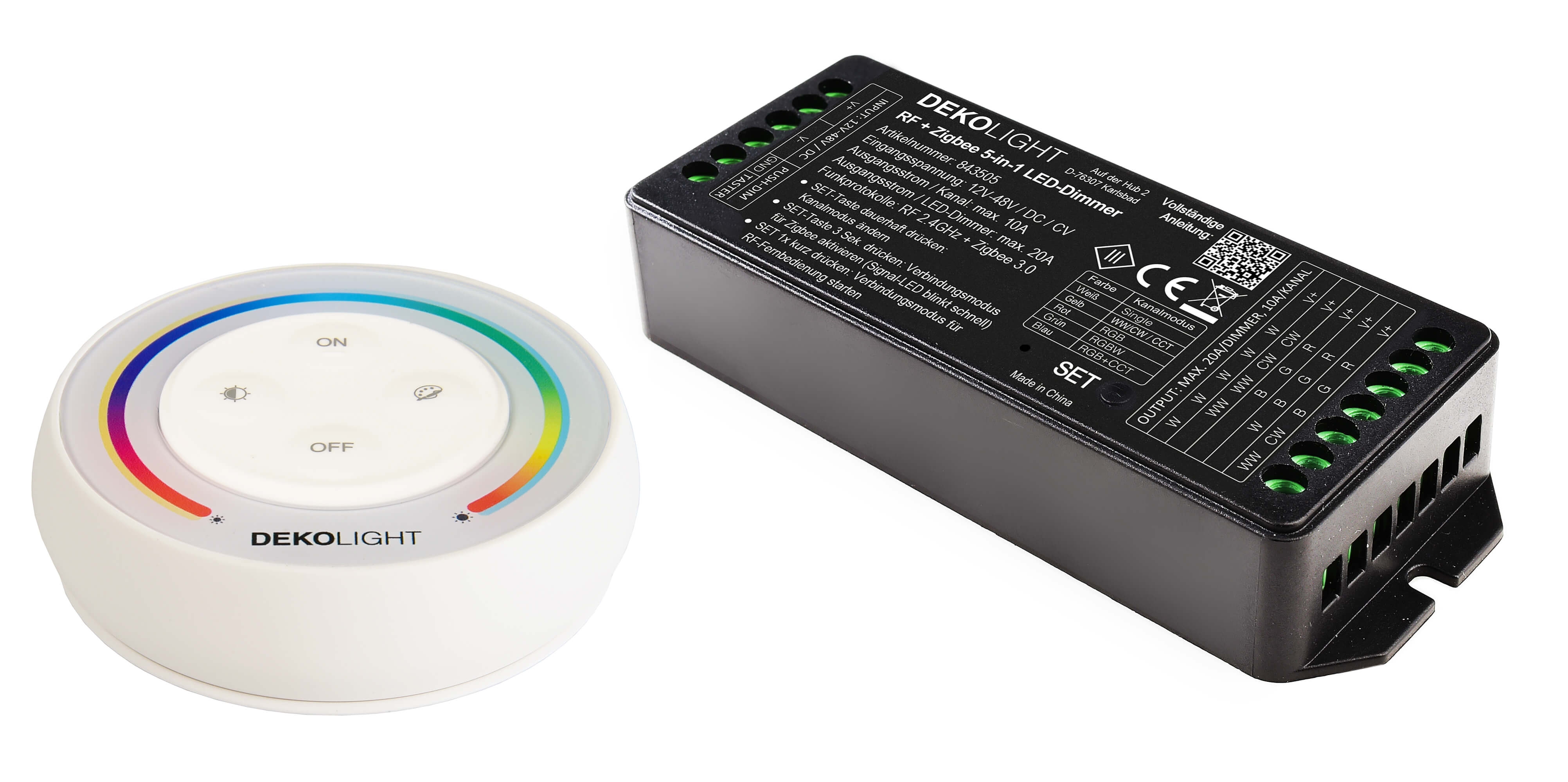 Deko-Light, Steuerung RF, RF-smart, Starter-Set RGB/W/CCT, 12-48V, 20A inkl. Fernb., IP20, Spannungskonstant, Dimmbar: Ja, RF-Smart, ZigBee 3.0, Intelli Push-Dim, Eingangsspannung: 12-48 V/DC, Ausgangsspannung: 12-48 V/DC, IP 20