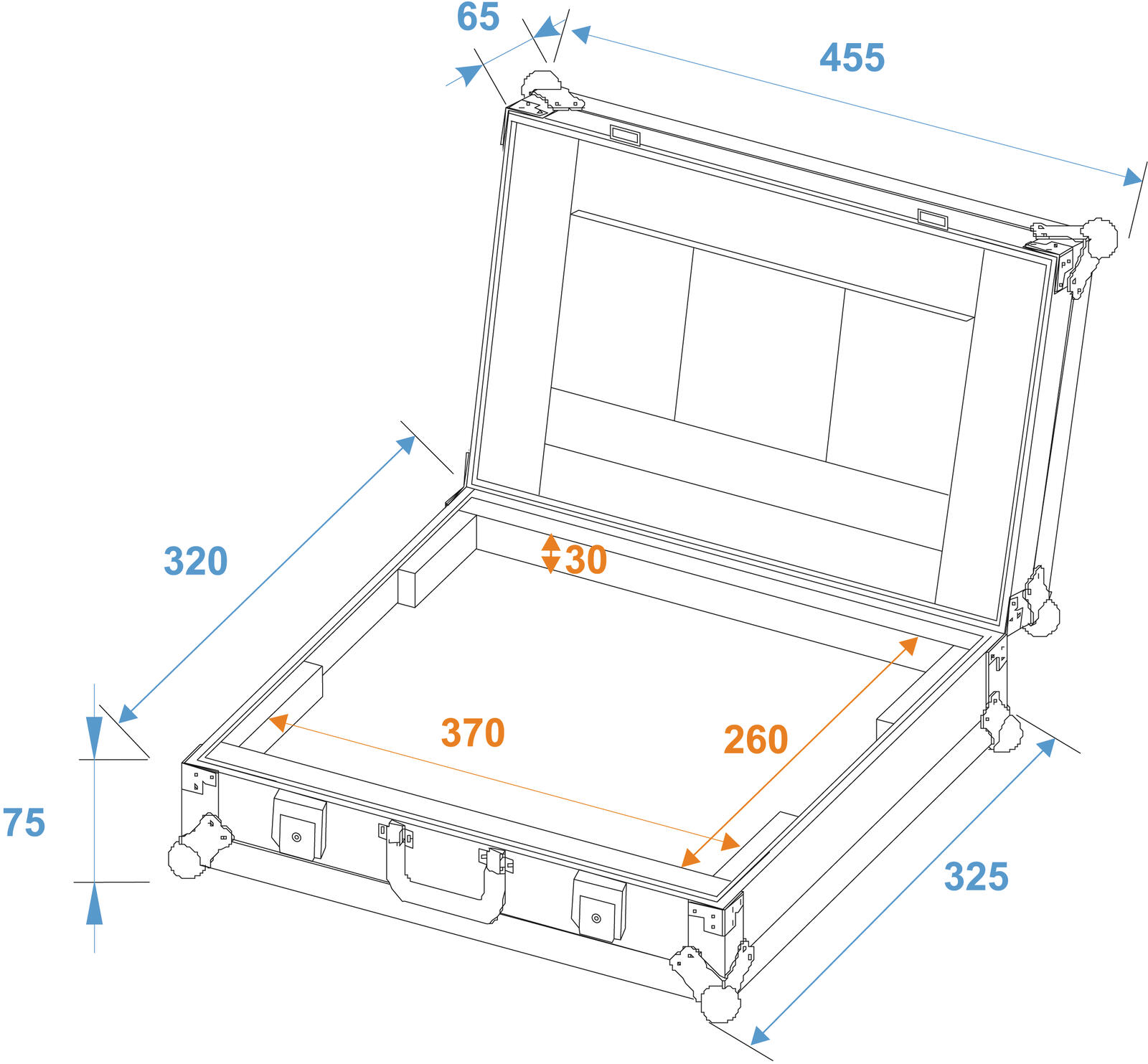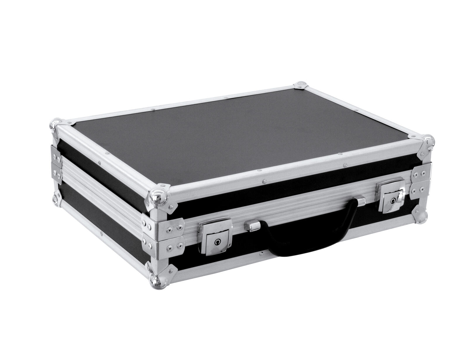 Flightcase für einen Laptop mit 15"Mit dem ROADINGER Laptop-Case ist Ihr 15" -Laptop immer bestens geschützt. Das Hauptfach ist für einen Laptop mit maximal 370 x 255 x 30 mm konzipiert. Die im Deckel integrierte Zubehörtasche eignet sich für externe Festplatten oder Netzteile und Kabel. Die hochwertige Verarbeitung mit 4 Millimeter dickem, mehrschichtig verleimtem Holz und dem robusten Tragegriff sorgt dafür, dass Ihr Laptop gut geschützt ist. Für die nötige Stabilität sorgt der Aluminiumprofilrahmen sowie die dreischenkligen, kleinen Stahlkugelecken. Die zwei abschließbaren Schnappschlösser sichern Ihren Laptop noch zusätzlich vor unautorisiertem Zugriff.