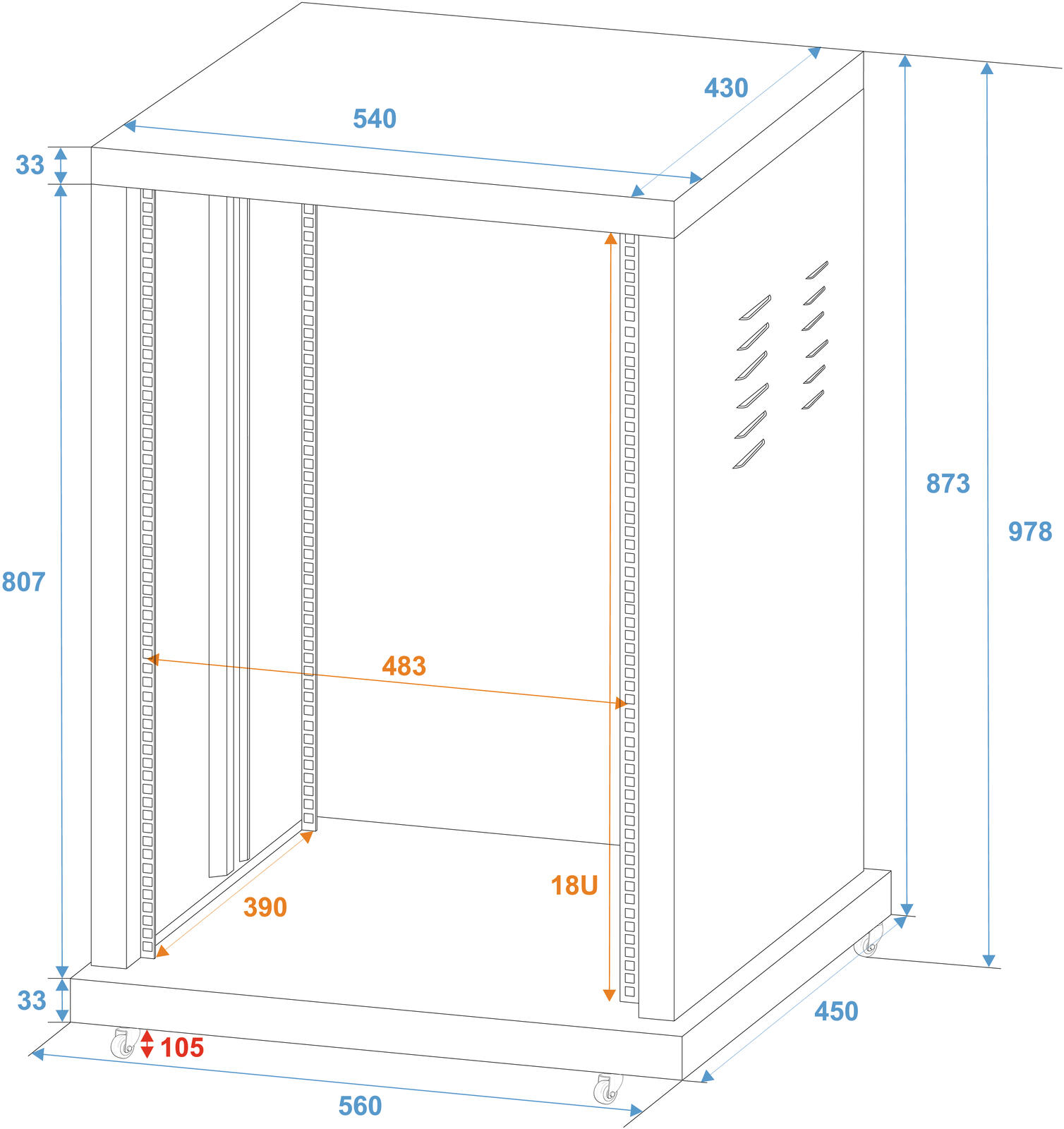- Gestanzte Rackschienen vorne und hinten
