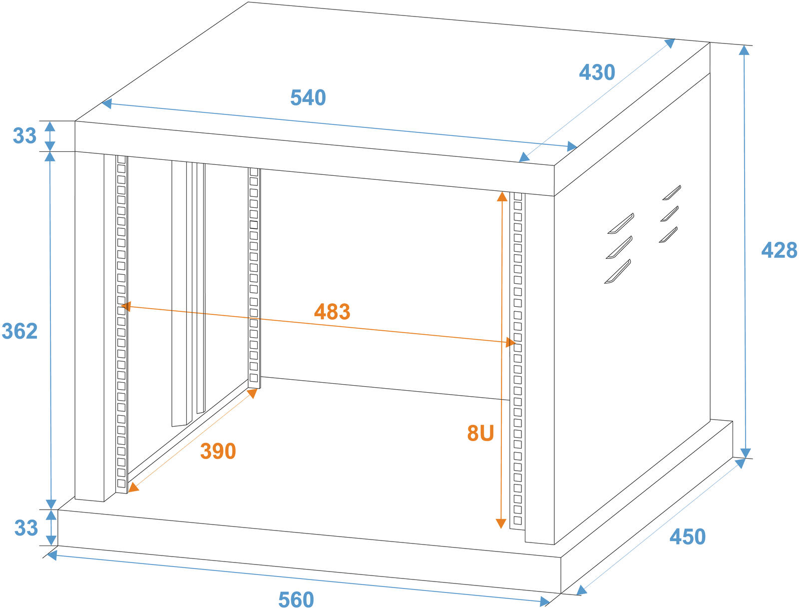 • Gestanzte Rackschienen vorne und hinten