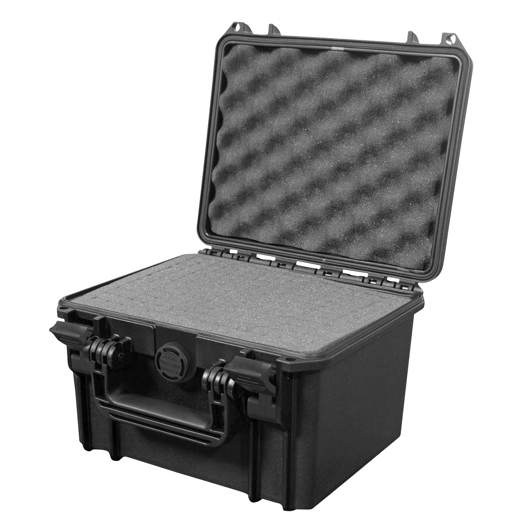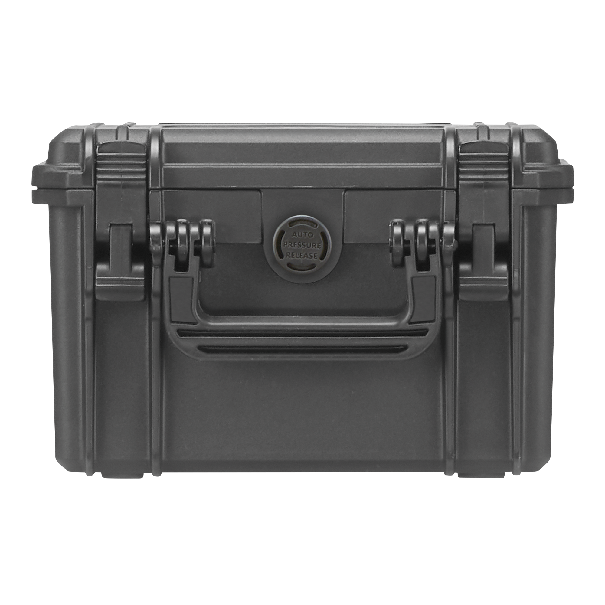 Dieser robuste Koffer ist ideal für den Schutz wertvoller Ausrüstung während der Lagerung und des Transports. Die mitgelieferten Zupfschaum ermöglichen eine individuelle Anpassung für eine perfekte Passform, während die robusten, doppelreihigen Verschlüsse optimale Sicherheit bieten und leicht zu öffnen sind. Mit der Schutzart IP67 bietet das Gehäuse effektiven Schutz gegen Staub und Wasser, während das automatische Druckablassventil den internen Luftdruck ausgleicht.