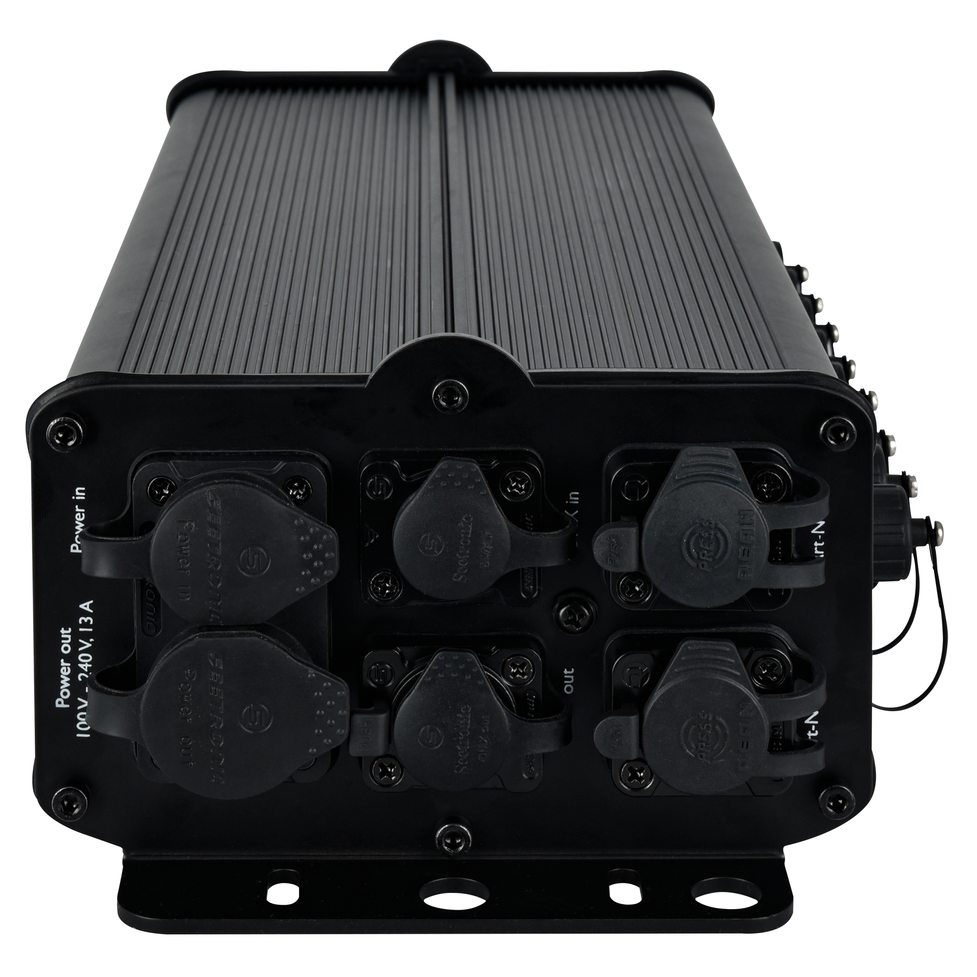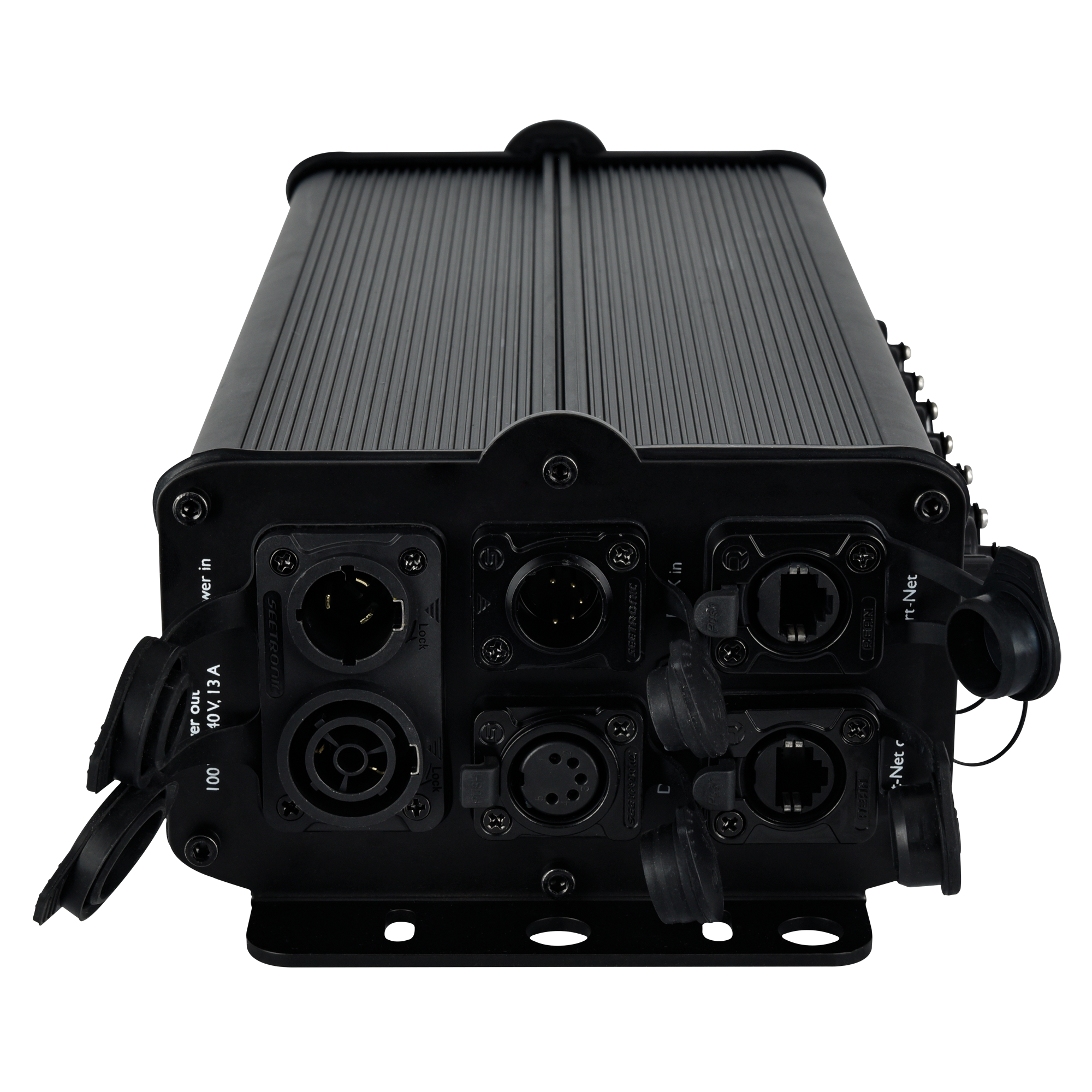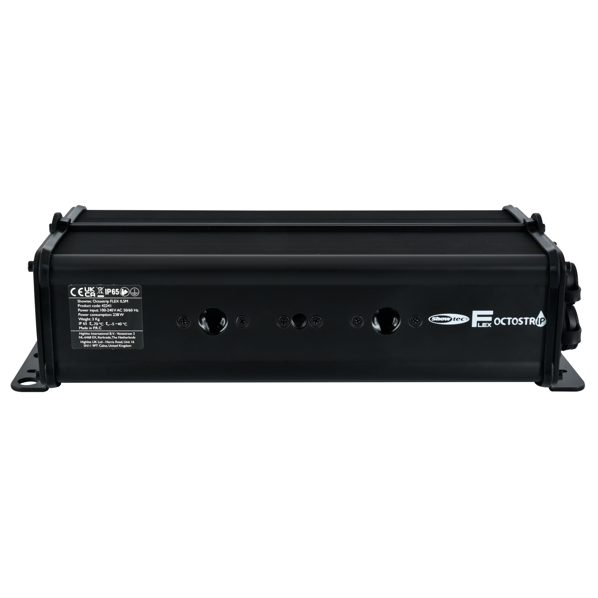 Die Showtec Steuerung für Octostrip FLEX ist eine IP65-zertifizierte Steuerung, die bis zu 8 Showtec Single Strips für Octostrip FLEX steuern kann. Sie kann die 1-m- und 0,5-m-Versionen steuern (das Kombinieren beider Längen ist nicht möglich). Die Steuerung unterstützt Art-Net und DMX, verfügt aber auch über eigenständige Modi mit integrierten Farbvoreinstellungen und Farbsequenzen. Sie verwendet 5-polige XLR-DMX-Anschlüsse und Power Pro True-Stromanschlüsse. Sie hat ein robustes Aluminiumgehäuse mit mehreren Montageoptionen.
