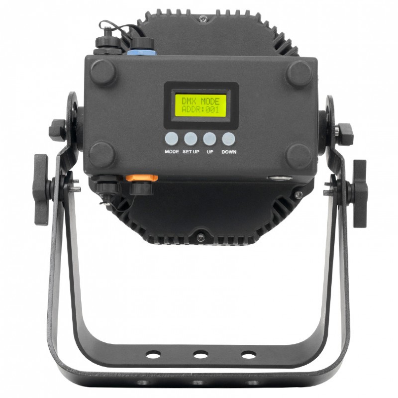 This fixture uses LEDs rated at 50,000 hours with a maximum power draw of 56W. DMX addressing may also be changed by the unit’s 4-button LED display, or controlled by a DMX Controller by DMX cabling or via ADJ’s stand alone WiFly Transceivers.