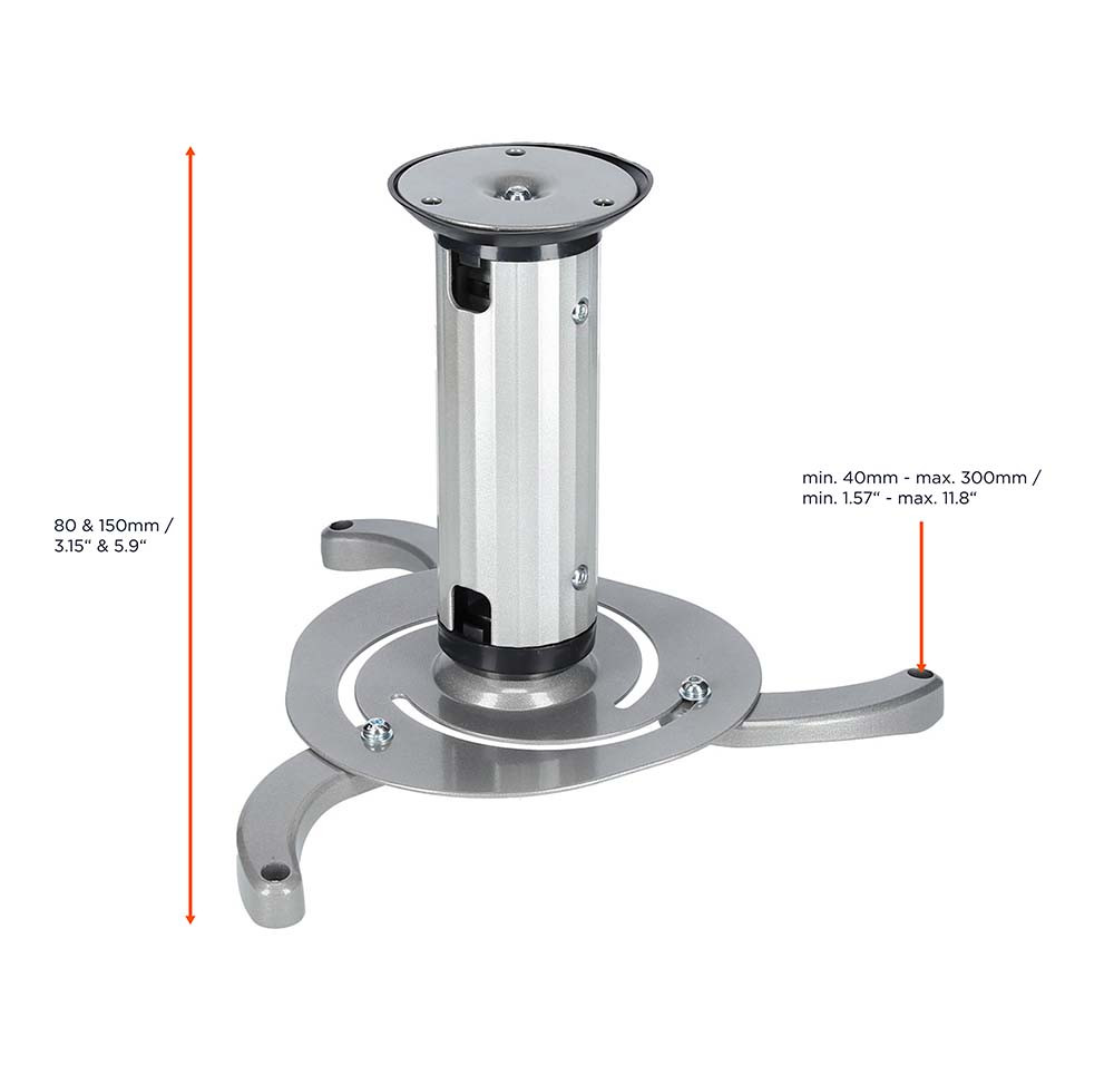Die Deckenhalterung PS 815 zeichnet sich nicht nur durch absolute Flexibilität aus, sondern ebenso durch Ihr elegantes Design. Ein echter Hingucker universell passend für nahezu jeden Beamer. Dank des praktischen Einrast-Systems lässt sich der Beamer schnell von der Decke abnehmen.