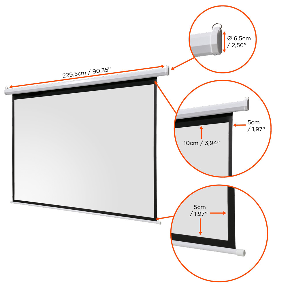 Dank des langlebigen und zuverlässigen Motor-Mechanismus können Sie die Leinwand einfach mit Hilfe der integrierten Vorrichtung ausziehe. Der verbaute Mechanismus sorgt für eine gleichbleibende Rückzugskraft und stellt eine lange Lebensdauer sicher.
