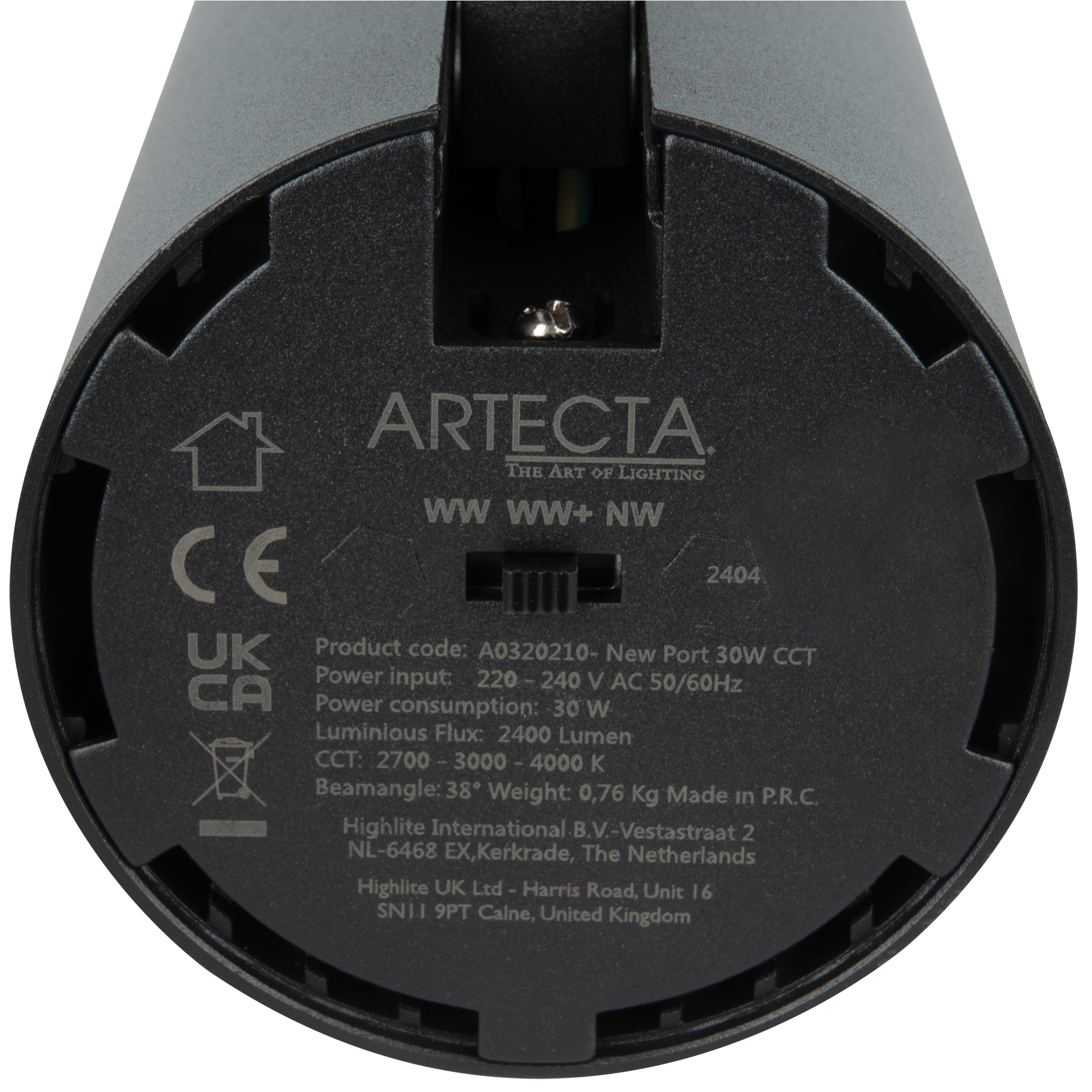 Die Artecta New Port Schienenstrahler 30 W CCT ist eine dimmbare 3-Phasen Schienen LED Lampe mit 3 CCT Schalltbares Weiß. Sie verfügt über einen Schalter auf der Rückseite zur Umschaltung von einer warmweißen (2700 K) auf eine neutral- oder kühlweiße (3000 K/4000 K) Farbtemperatur. Diese Farbtemperaturen sind hoch spezifiziert (>90 CRI).