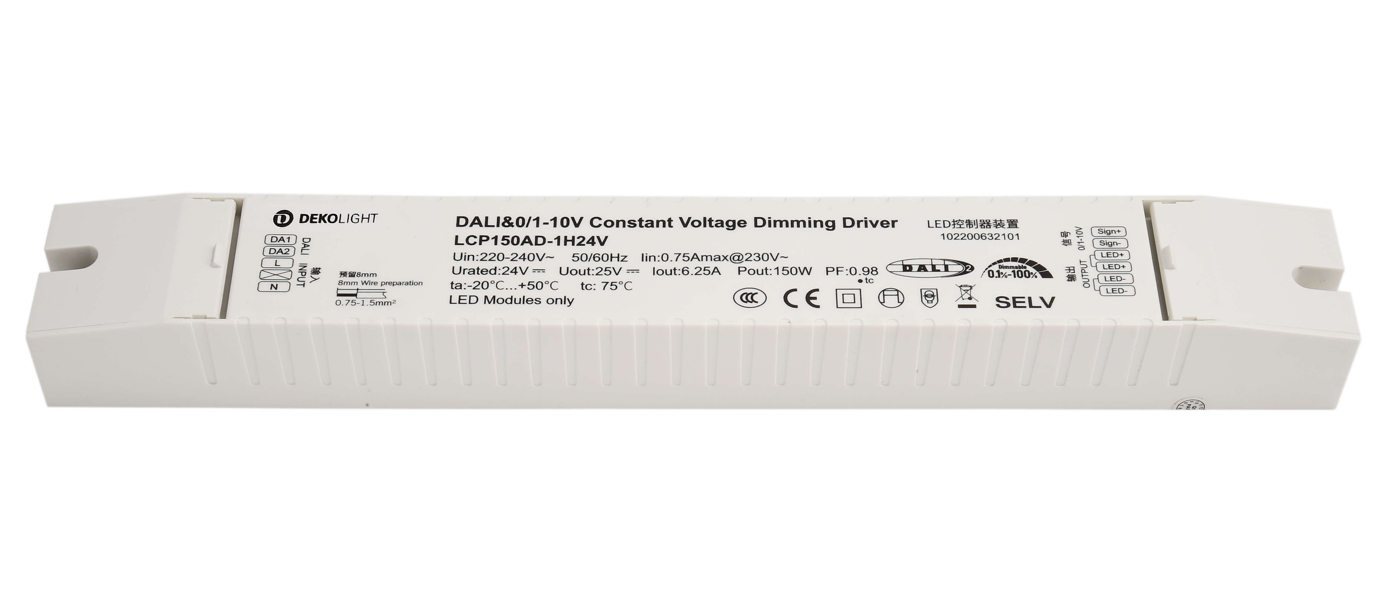 Deko-Light, Netzgerät (CV, DC) dimmbar, BASIC, DIM, CV, LCP150AD-1H24V, Spannungskonstant, Dimmbar: Ja, DALI 2.0 / DT6, 0-10 V, 1-10 V, Intelli Push-Dim, 150.0 W, Eingangsspannung: 220-240 V/AC, Ausgangsspannung: 24 V/DC, IP 20