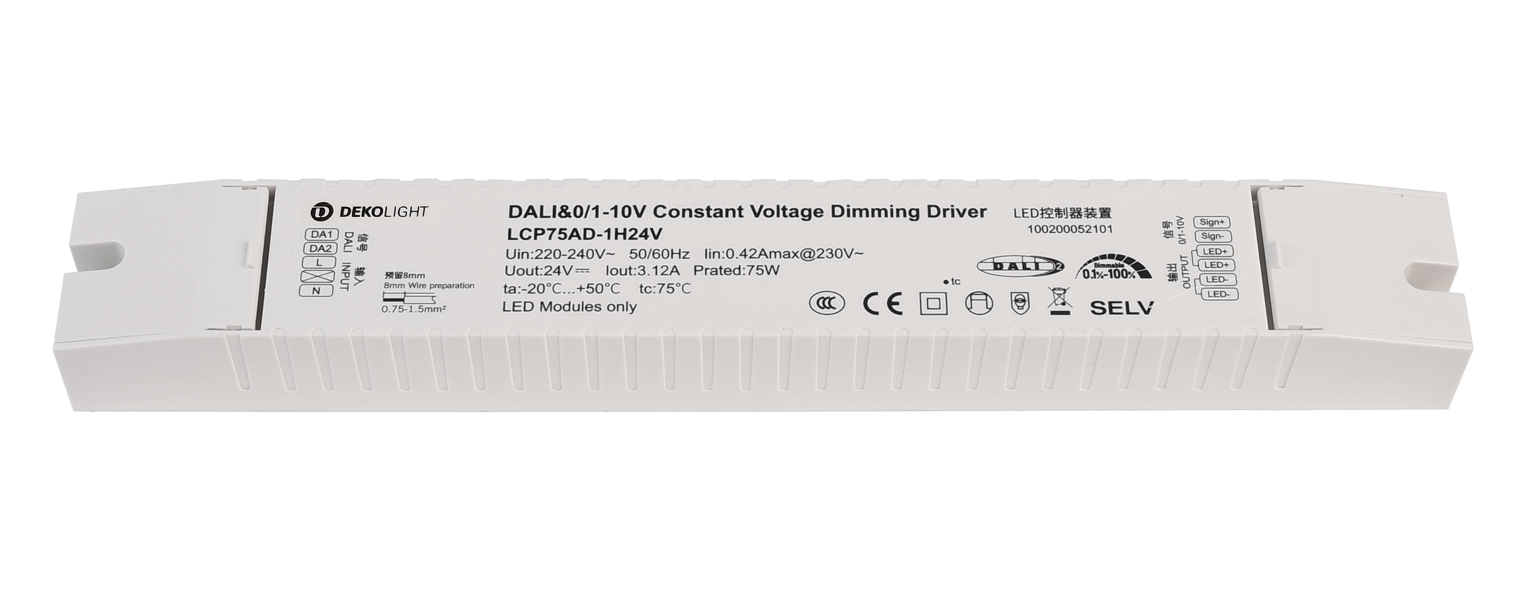 Deko-Light, Netzgerät (CV, DC) dimmbar, BASIC, DIM, CV, LCP75AD-1H24V, Spannungskonstant, Dimmbar: Ja, DALI 2.0 / DT6, 0-10 V, 1-10 V, Intelli Push-Dim, 75.0 W, Eingangsspannung: 220-240 V/AC, Ausgangsspannung: 24 V/DC, IP 20