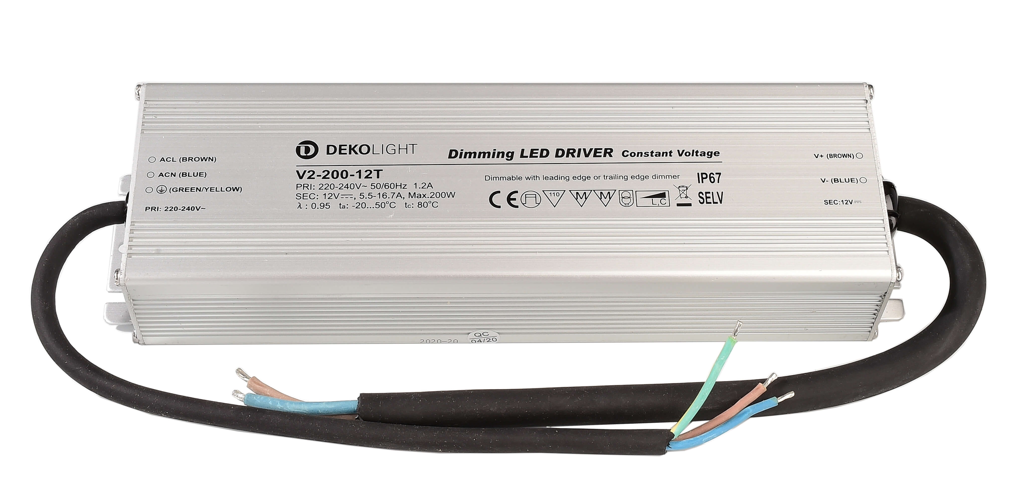 Deko-Light, Netzgerät (CV, DC) dimmbar, IP, DIM CV, 12 V 66-200 W, Spannungskonstant, Dimmbar: Ja, Phasenanschnittsdimmer, Phasenabschnittsdimmer, 66,0-200,0 W, Eingangsspannung: 220-240 V/AC, Ausgangsspannung: 12 V/DC, IP 67