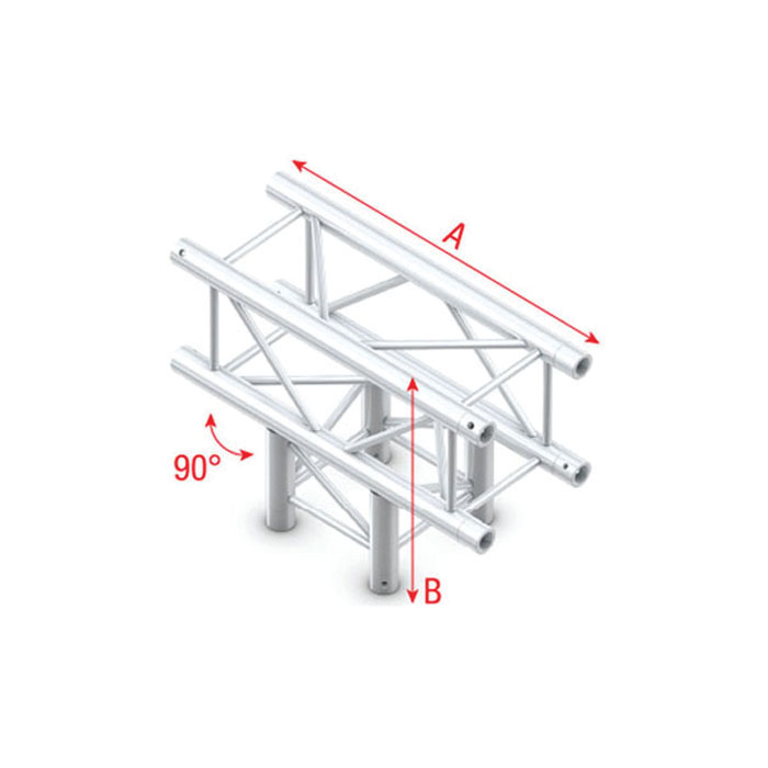 MILOS Pro-30 Square F Truss - T-Cross 3-way - 50 cm F (Prolyte Ø 27,8 mm compatible) QTF35sp - 90° Ecke - silber - F