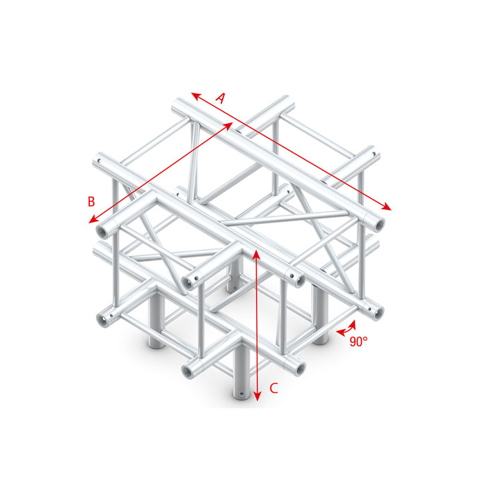 Produktinformationen "MILOS Pro-40 Square F Truss - Cross + Down 5-way F (Prolyte Ø 27,8 mm compatible), Silver QCLF51 - 90° Ecke - heavy duty - F"