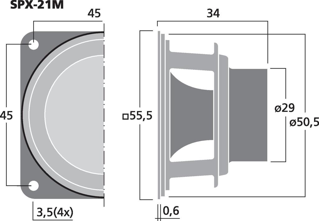 Impedanz (Z): 4 Ω, Übertragungstechnik: Kabel, Frequenzbereich: f3-22000 Hz, Resonanzfrequenz (fs): 170 Hz, Nennbelastbarkeit (RMS): 12 W, Musikbelastbarkeit (MAX): 25 W, Kennschalldruck: 84 dB/W/m, Nachgiebigkeit (Cms): 0,6 mm/N, Bewegte Masse (Mms): 1,45 g, Mechanische Güte (Qms): 4,66, Elektrische Güte (Qes): 0,53, Gesamtgüte (Qts): 0,47, Äquivalentvolumen (Vas): 0,1 l, Gleichstromwiderst. (Re): 3,74 Ω, Kraftfaktor (BxL): 3,32 Tm, Schwingspulenind. (Le): 0,12 mH, Schwingspulendurchm.: Ø 20 mm, Schwingspulenträger: Kapton, Lineare Auslenkung (XMAX): ± 1,2 mm, Eff. Membranfläche (Sd): 13 cm2, Magnetgewicht: 25,8 g, Magnetdurchmesser: Ø 29 mm, Einbauöffnung: Ø 50,5 mm, Einbautiefe: 33,4 mm, Lochabstand X: 45 mm, Lochabstand Y: 45 mm, Abmessungen: 55,5 x 55,5 x 34 mm, Breite: 55,5 mm, Höhe: 55,5 mm, Tiefe: 34 mm, Farbe: Schwarz, Zul. Einsatztemperatur: 0-40 °C, Gewicht: 0,09 kg, Verpackungseinheit: 1, Lautsprechertyp: 2", Verpackungsmaße (B x H x L): 0,06 x 0,045 x 0,06 m, Bruttogewicht: 0,098 kg, Nettogewicht: 0,087 kg, EAN-Code: 4007754221305, Nettogewicht: 0,087 kg