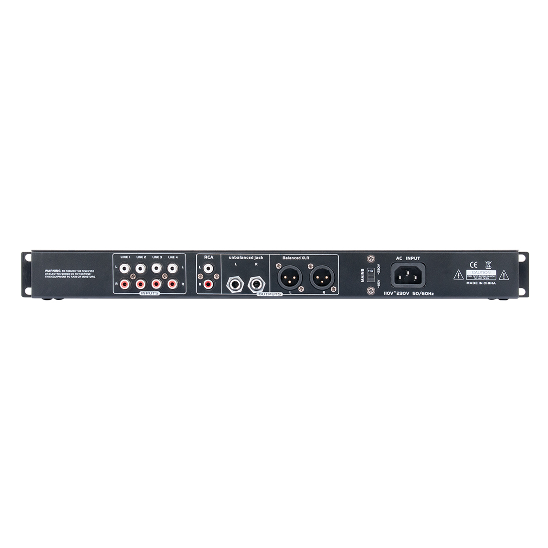 • 4x RCA line Inputs and 1x 3,5mm Auxiliary Jack Input