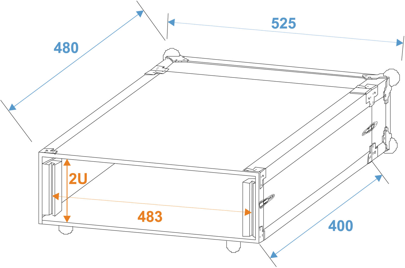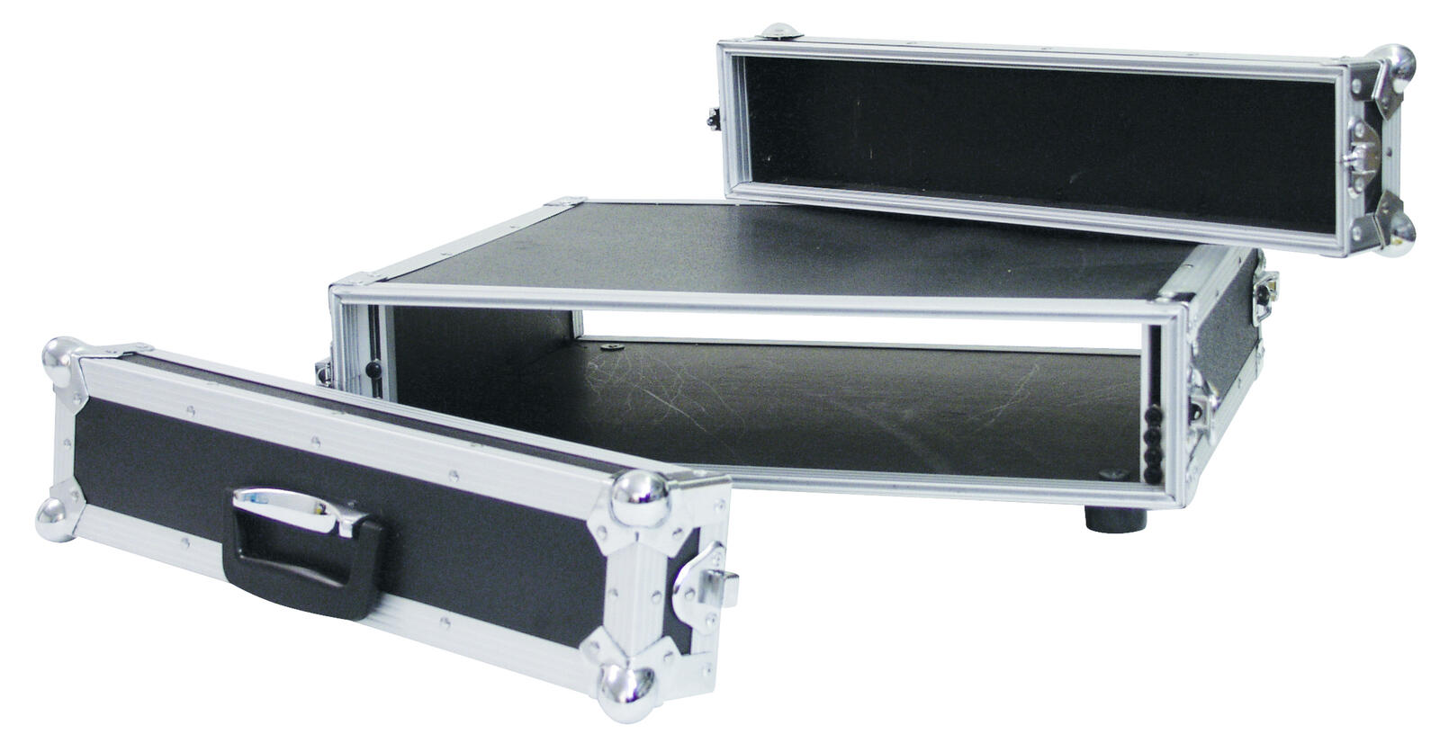 Flightcase für 483-mm-Geräte (19")Transportieren Sie Ihre 483-mm-Steuer- und Effektgeräte (19") mit dem ROADINGER Effektrack CO DD mit 40 cm Tiefe einfach und sicher. Zwei abnehmbare Deckel (Double-Door-Version), vier große, stahlverstärkte Gummifüße und eingebaute Rackschienen machen das Handling mit dem Flightcase einfach und komfortabel.Mehrschichtig verleimtes Holz, der stabiler Aluminiumprofilrahmen mit abgerundeten Ecken und dreischenklige, mittelgroße Stahlkugelecken verleihen dem Case Stabilität.Das Flightcase ist mit vier Schnappschlössern mit Ösen zum Absperren, eingebauten Rackschienen, sowie einem Koffergriff ausgestattet. Die maximale Last beträgt 20 kg.