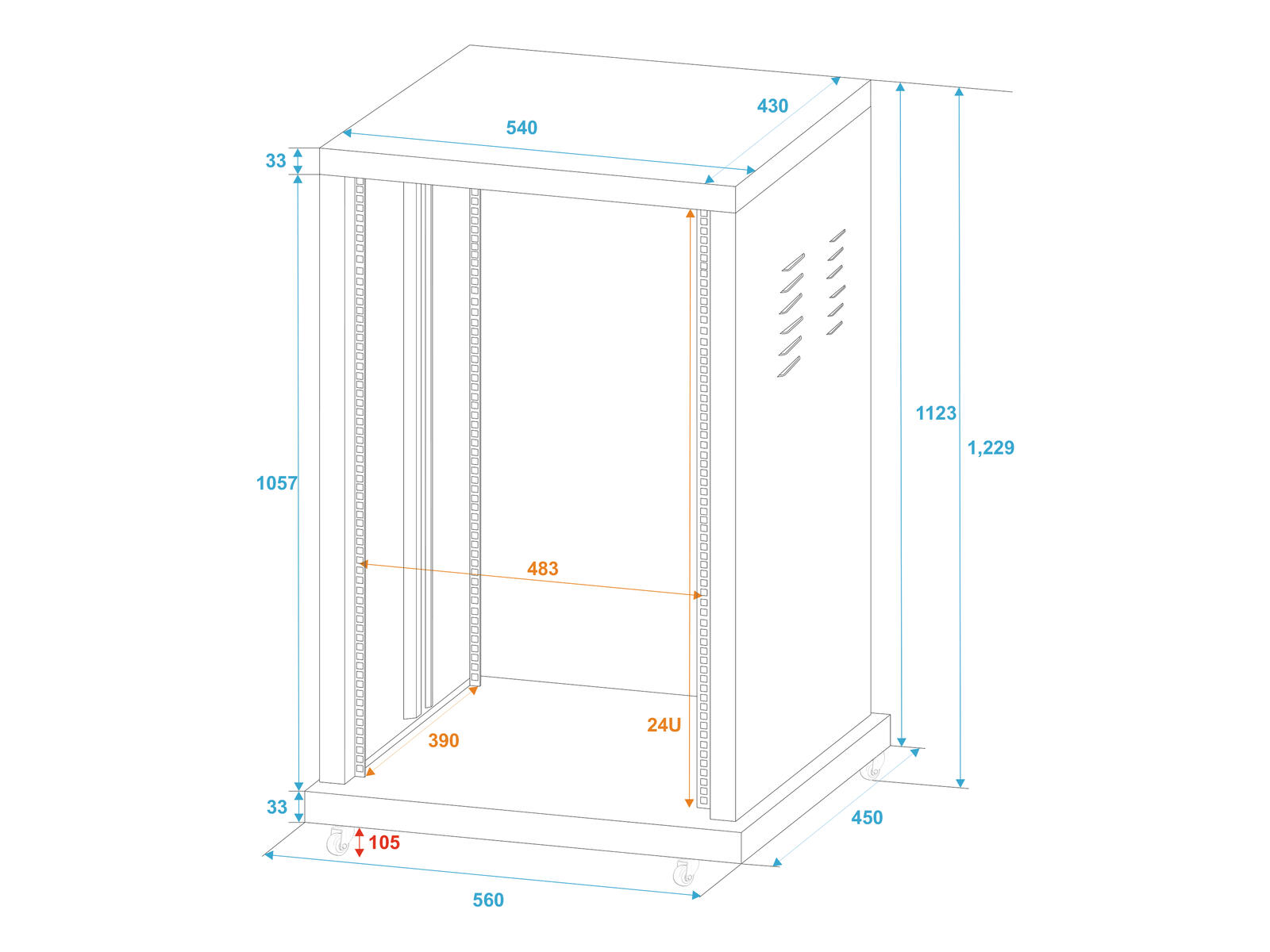 - Integrierte Stützschiene in den Seitenteilen für schwere Geräte wie Endstufen