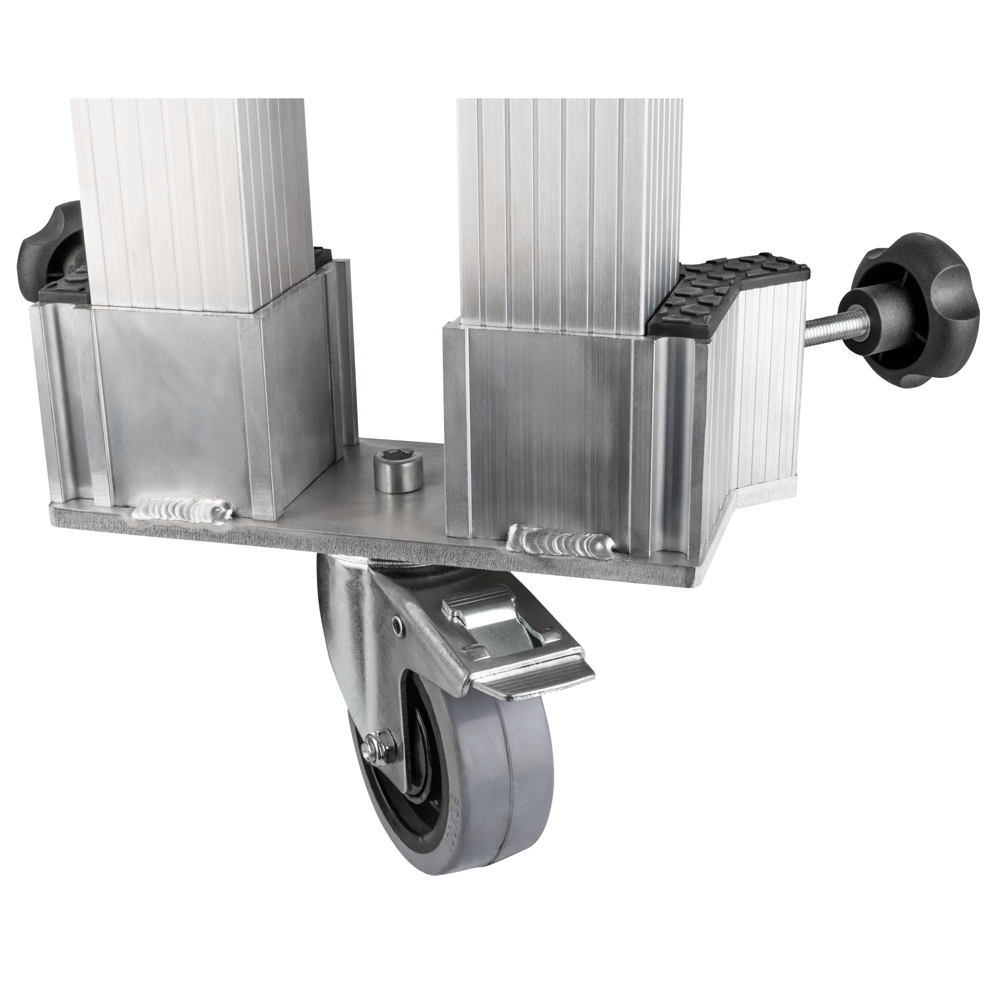 Der Showgear Mammoth Dex Einsatz für zwei Füße mit Schwenkrad erhöht die Mobilität Ihres Mammoth Dex Bühnenpodests. Er lässt sich nahtlos in die Halterung integrieren und ermöglicht es Ihnen, die Füße Ihres Mammoth Dex in die Halterung einzusetzen. So machen Sie Ihre Bühne im Handumdrehen beweglich und können sie schnell und mühelos neu positionieren. Diese Räder eignen sich perfekt für Veranstaltungen, Aufführungen oder temporäre Installationen. Sie sorgen für leichte Handhabung und zuverlässige Stabilität, wenn sie eingerastet sind. Sie sind mit oder ohne Bremse und sowohl für einzelne als auch für zwei Füße erhältlich.
