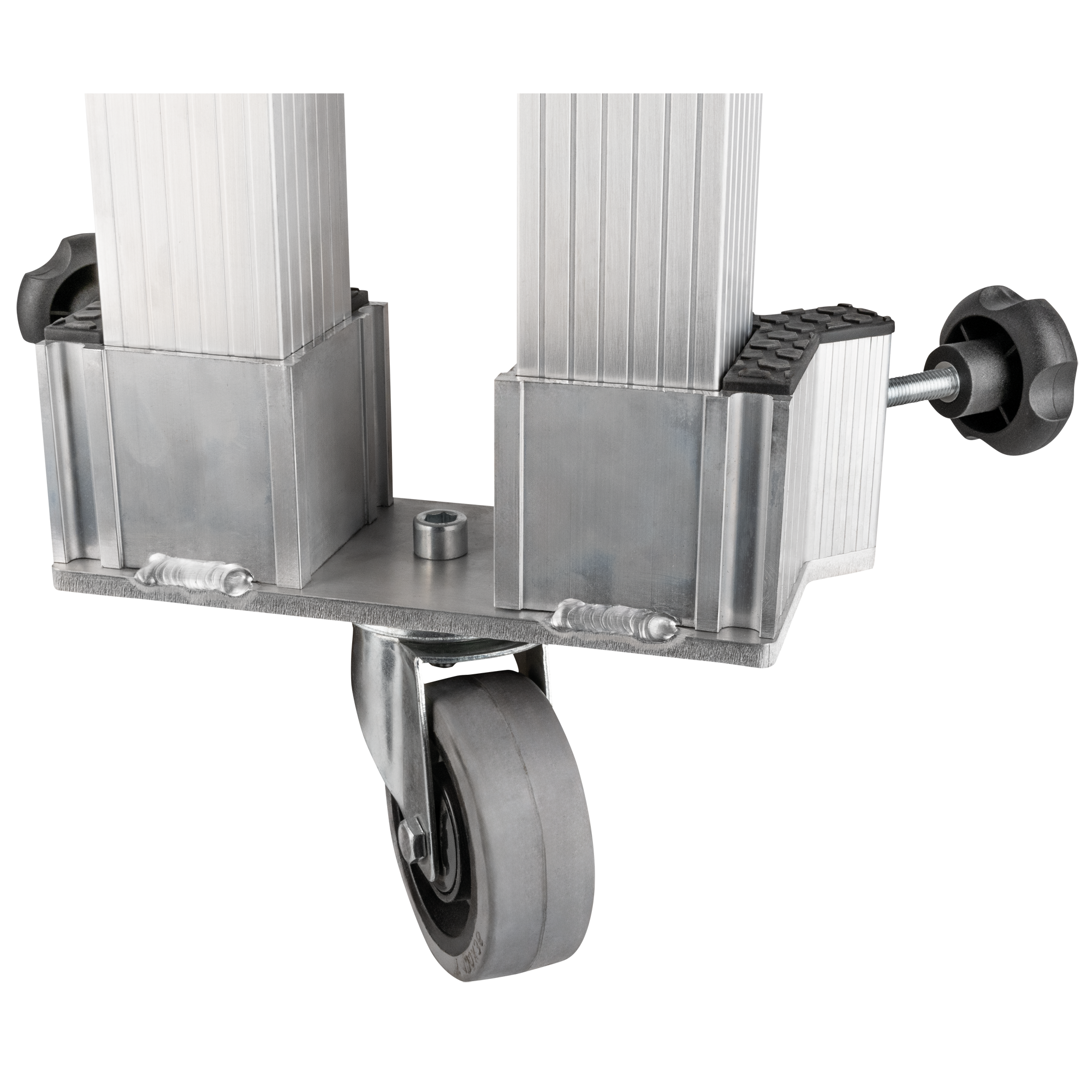 Der Showgear Mammoth Dex Einsatz für zwei Füße mit Schwenkrad erhöht die Mobilität Ihres Mammoth Dex Bühnenpodests. Er lässt sich nahtlos in die Halterung integrieren und ermöglicht es Ihnen, die Füße Ihres Mammoth Dex in die Halterung einzusetzen. So machen Sie Ihre Bühne im Handumdrehen beweglich und können sie schnell und mühelos neu positionieren. Diese Räder eignen sich perfekt für Veranstaltungen, Aufführungen oder temporäre Installationen. Sie sorgen für leichte Handhabung und zuverlässige Stabilität, wenn sie eingerastet sind. Sie sind mit oder ohne Bremse und sowohl für einzelne als auch für zwei Füße erhältlich.