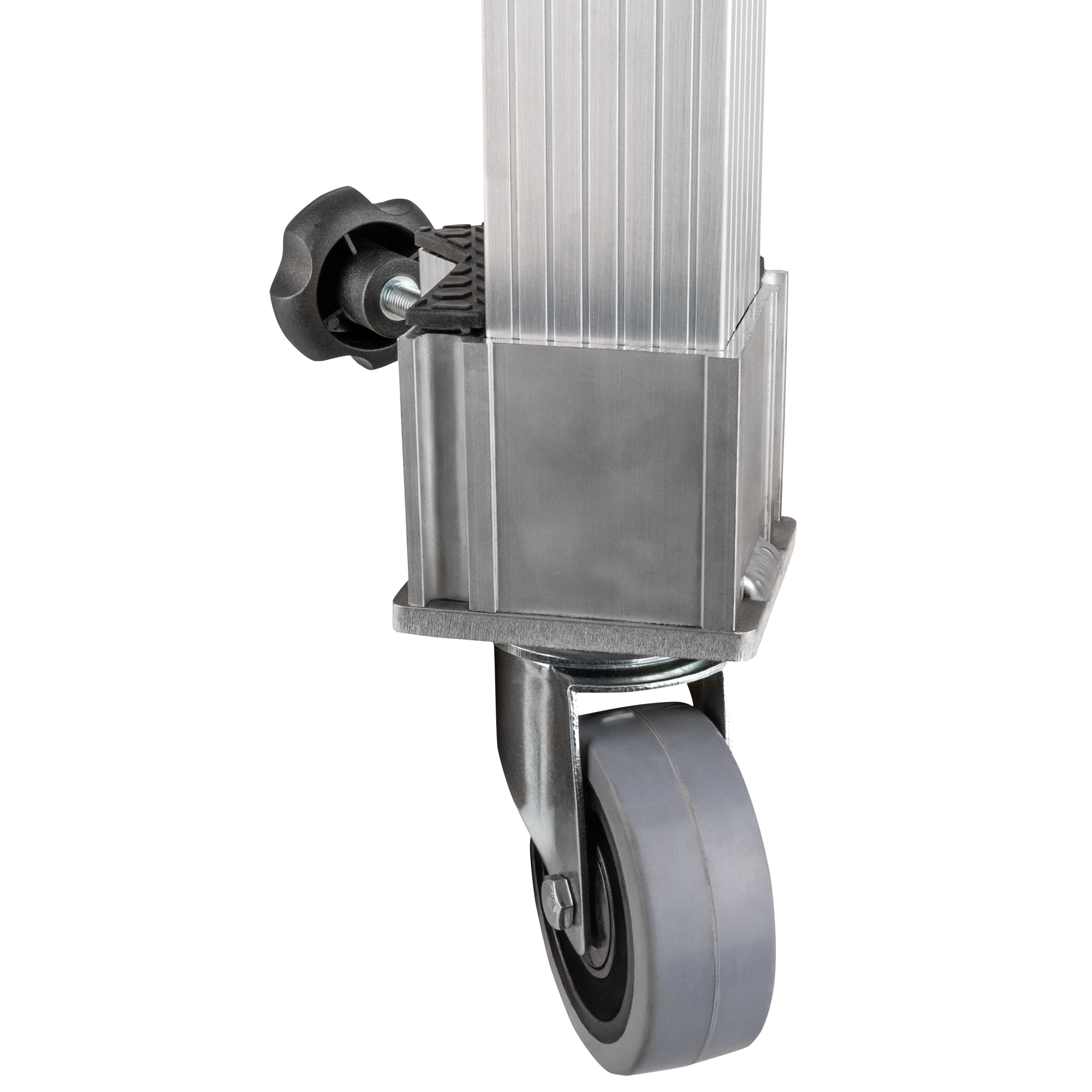 Der Showgear Mammoth Dex Einsatz für ein Fuß mit Schwenkrad erhöht die Mobilität Ihres Mammoth Dex Bühnenpodests. Er lässt sich nahtlos in die Halterung integrieren und ermöglicht es Ihnen, die Füße Ihres Mammoth Dex in die Halterung einzusetzen. So machen Sie Ihre Bühne im Handumdrehen beweglich und können sie schnell und mühelos neu positionieren. Diese Räder eignen sich perfekt für Veranstaltungen, Aufführungen oder temporäre Installationen. Sie sorgen für leichte Handhabung und zuverlässige Stabilität, wenn sie eingerastet sind. Sie sind mit oder ohne Bremse und sowohl für einzelne als auch für zwei Beine erhältlich.