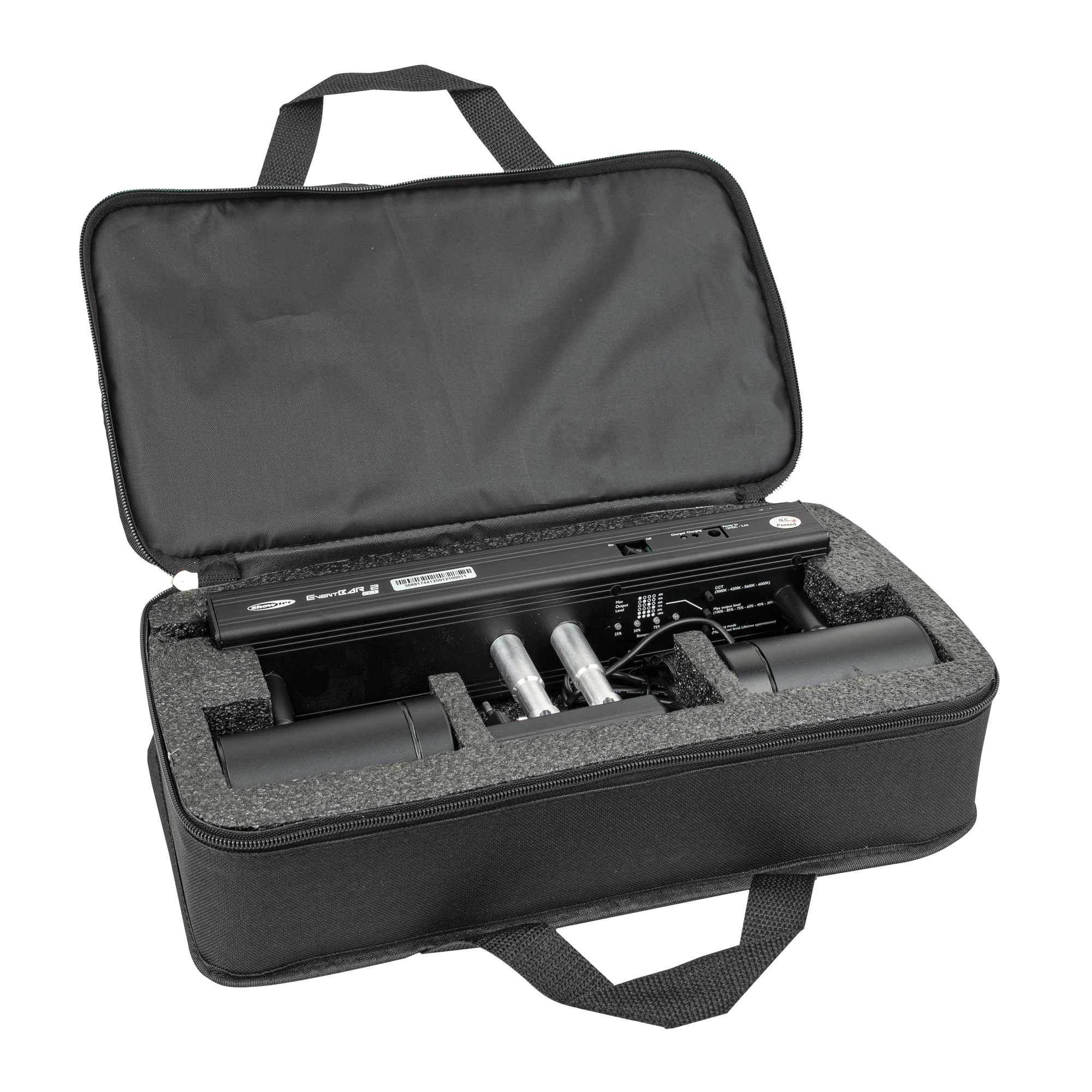 Der Akku der Event Bar 2 CCT hält zwischen 4 und 8 Stunden. Die Dauer des Akkus hängt davon ab, in welchem gewünschten Modus Sie ihn haben. Ein 25°-Diffusor ist im Lieferumfang enthalten, um seinen festen Abstrahlwinkel von 10° zu vergrößern. Eine passende Tragetasche ist ebenfalls im Lieferumfang enthalten.