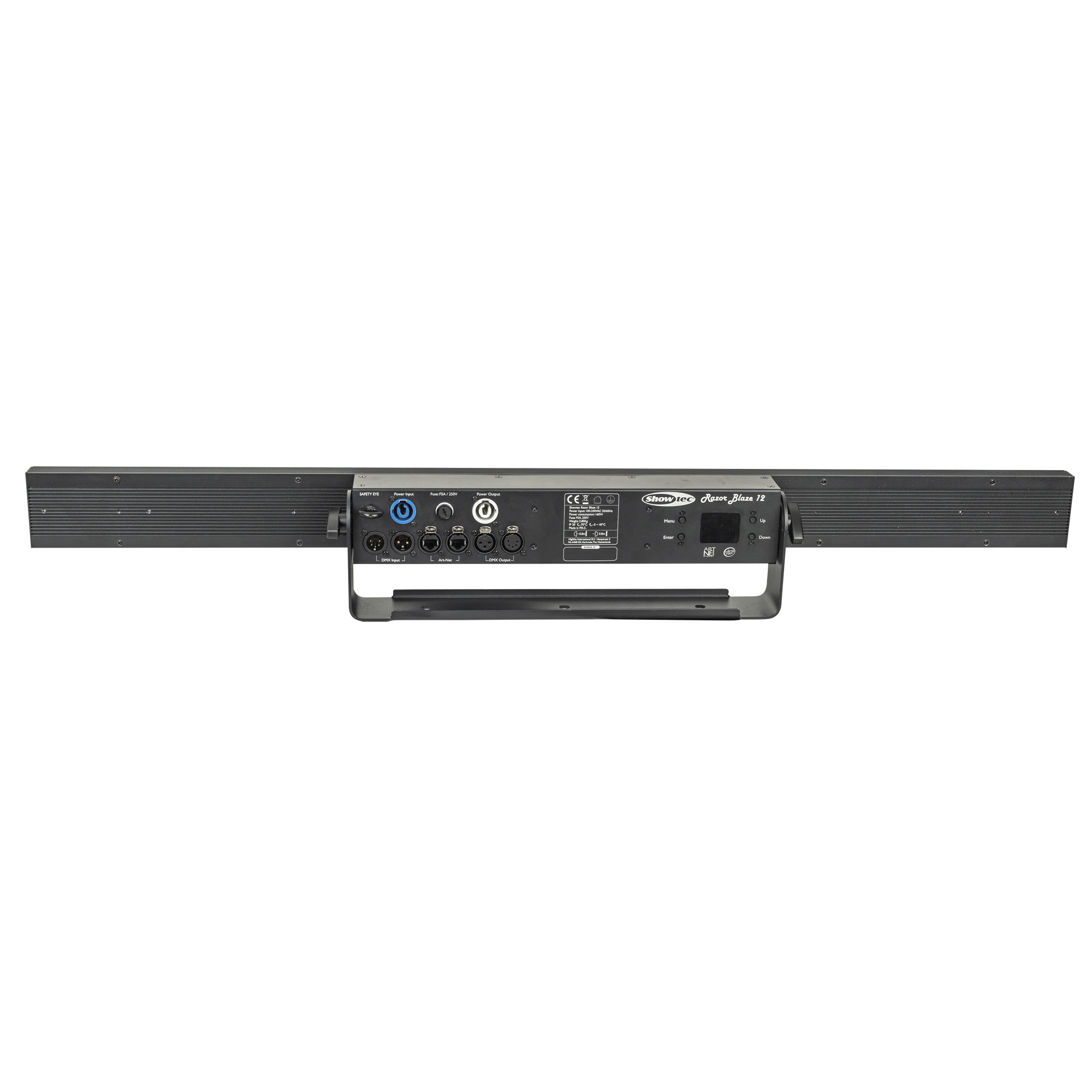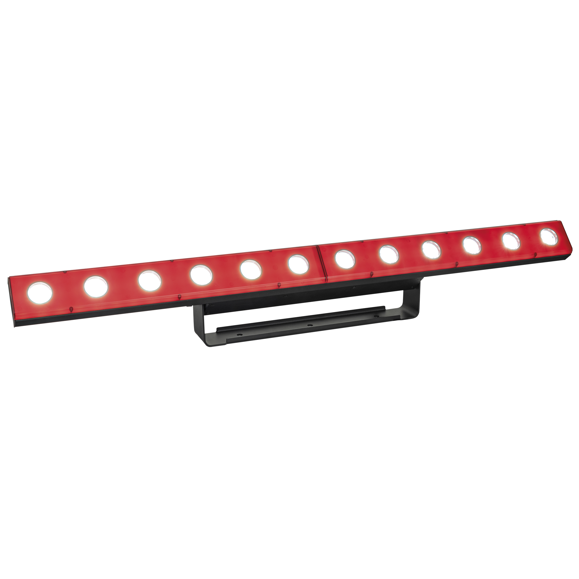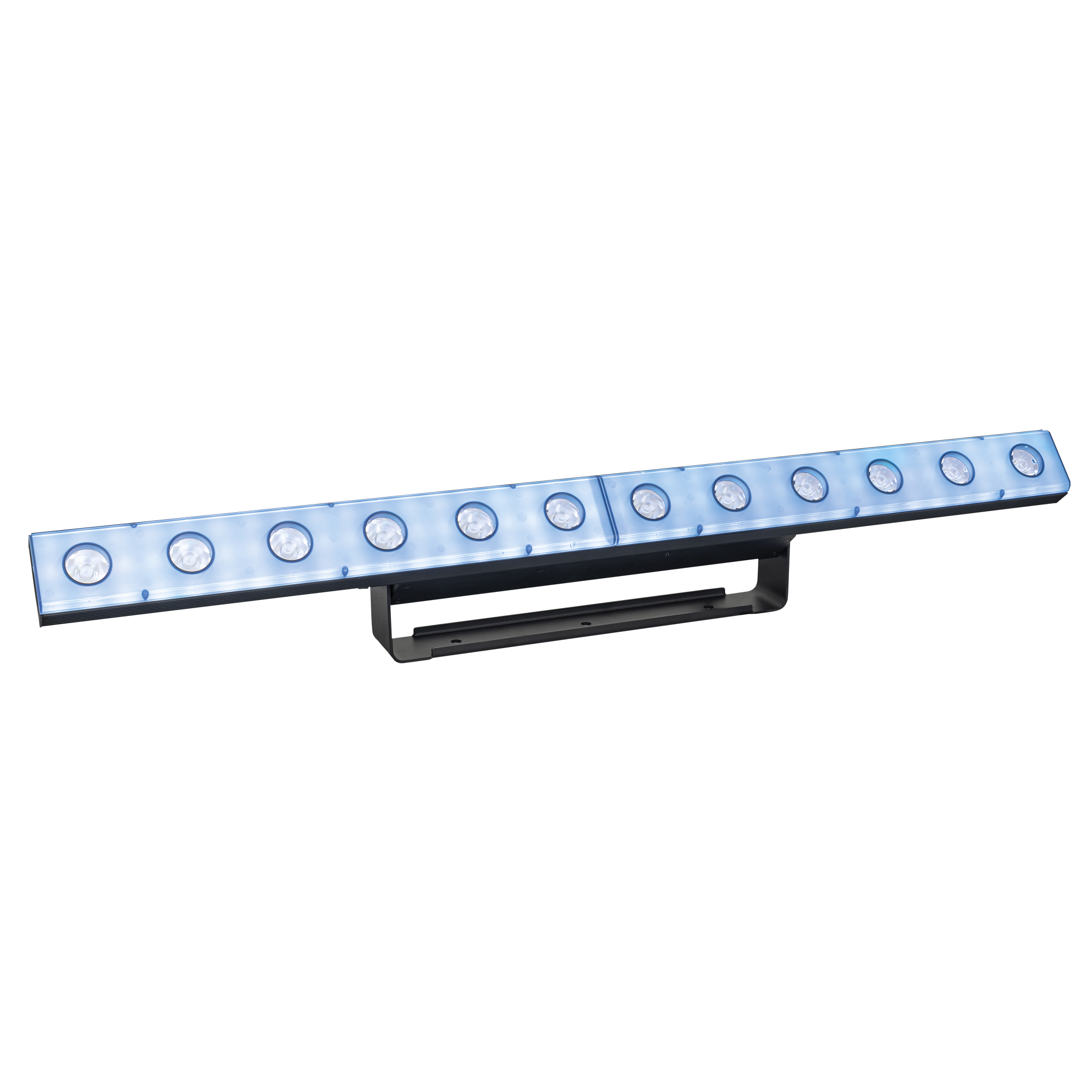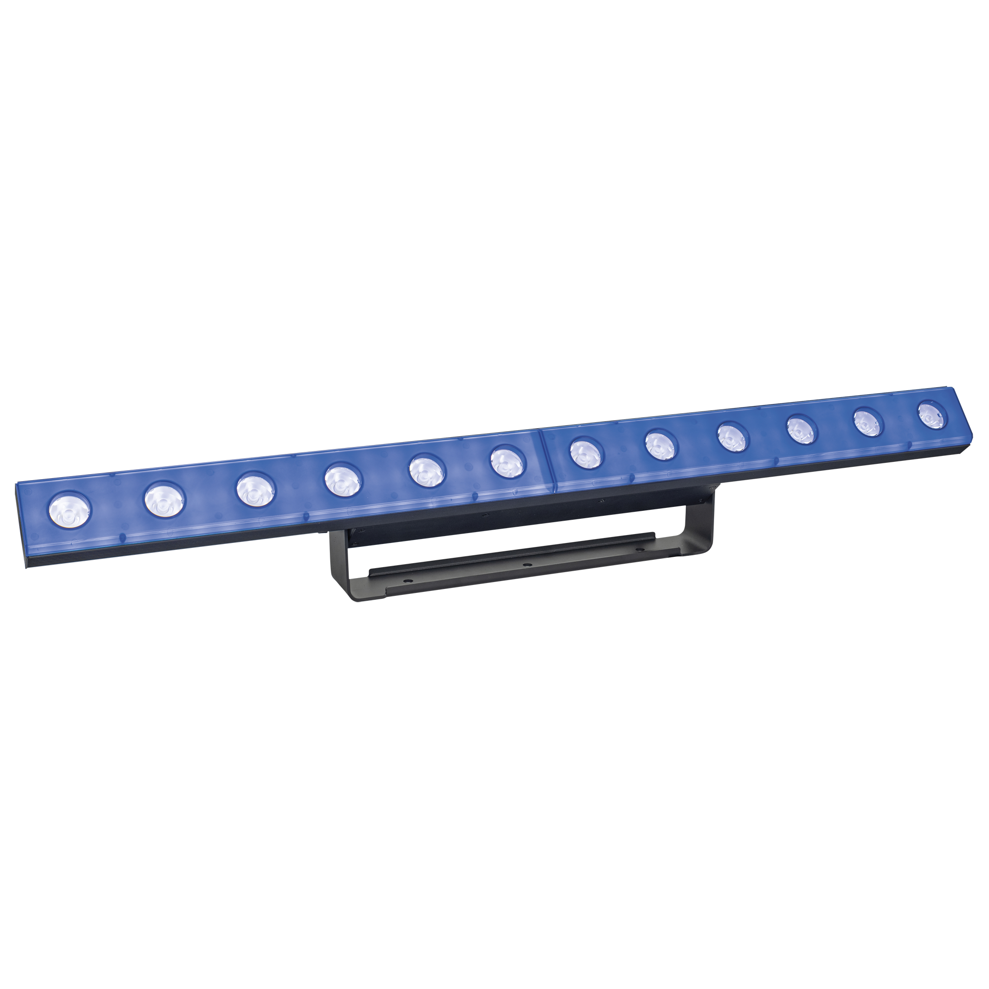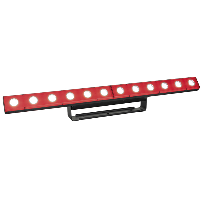 Der Showtec Razor Blaze 12, ist eine 2in1 LED-Matrix-Leiste, die mit 12 Stück 5W warmweißen Hochleistungs-LEDs (4° Abstrahlwinkel) und 96 Stück RGB-LEDs ausgestattet ist.