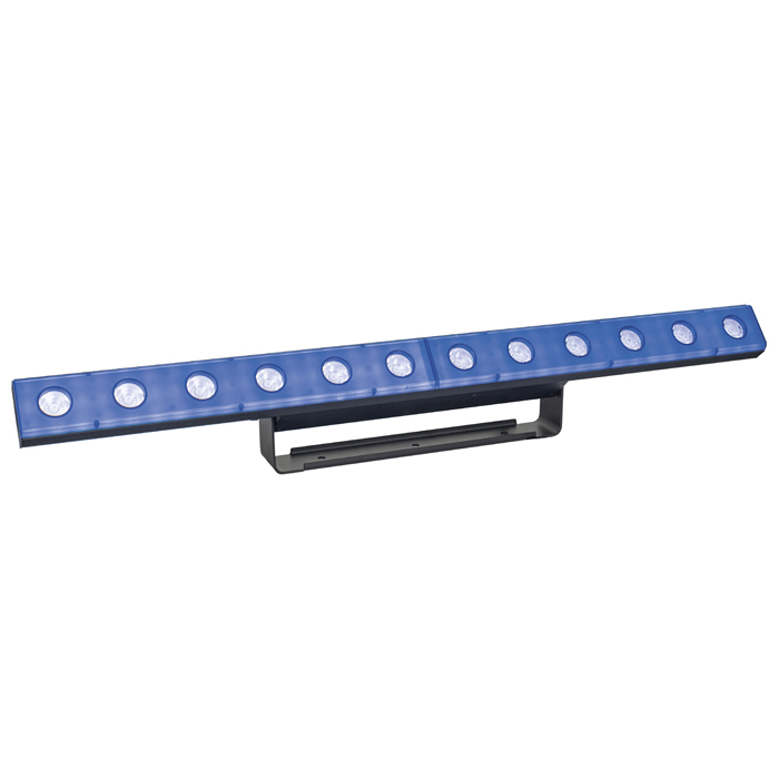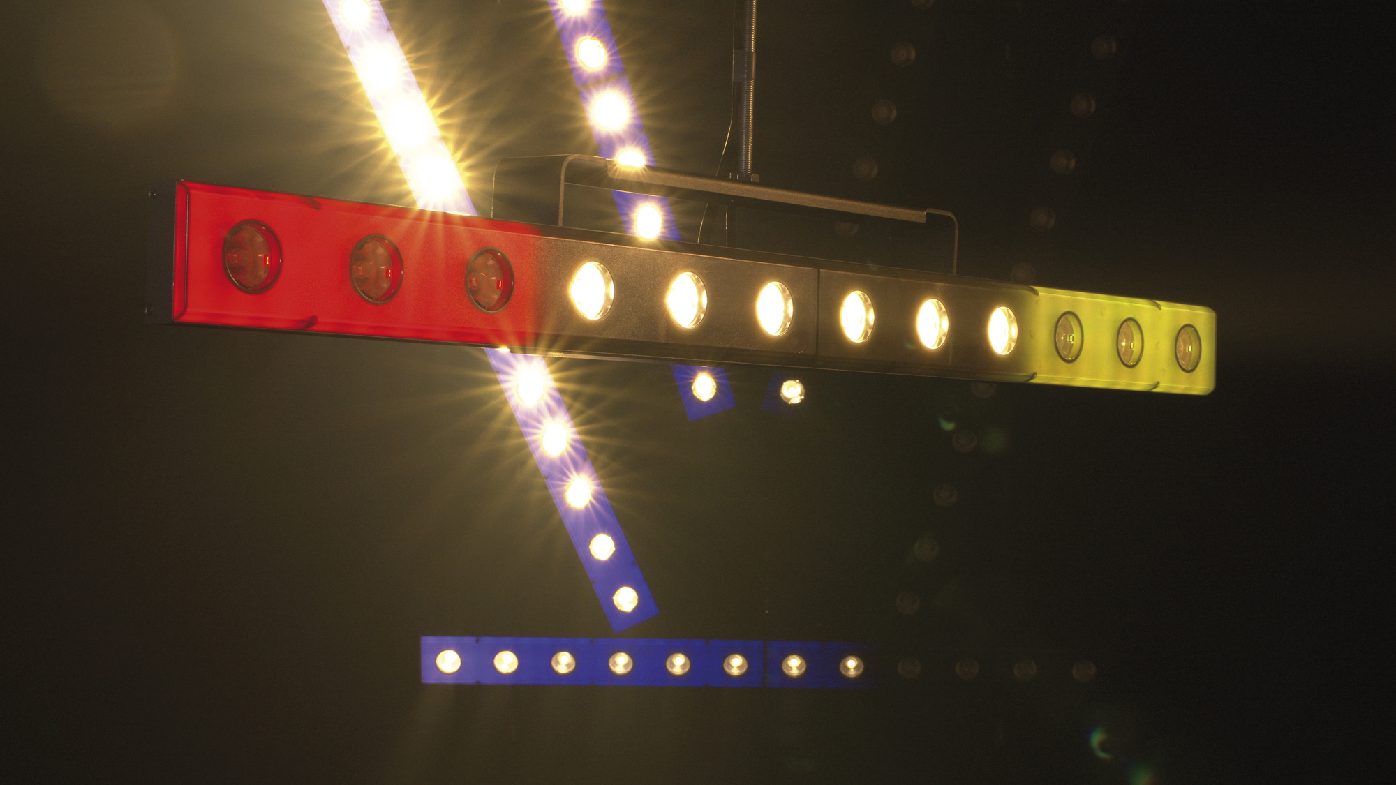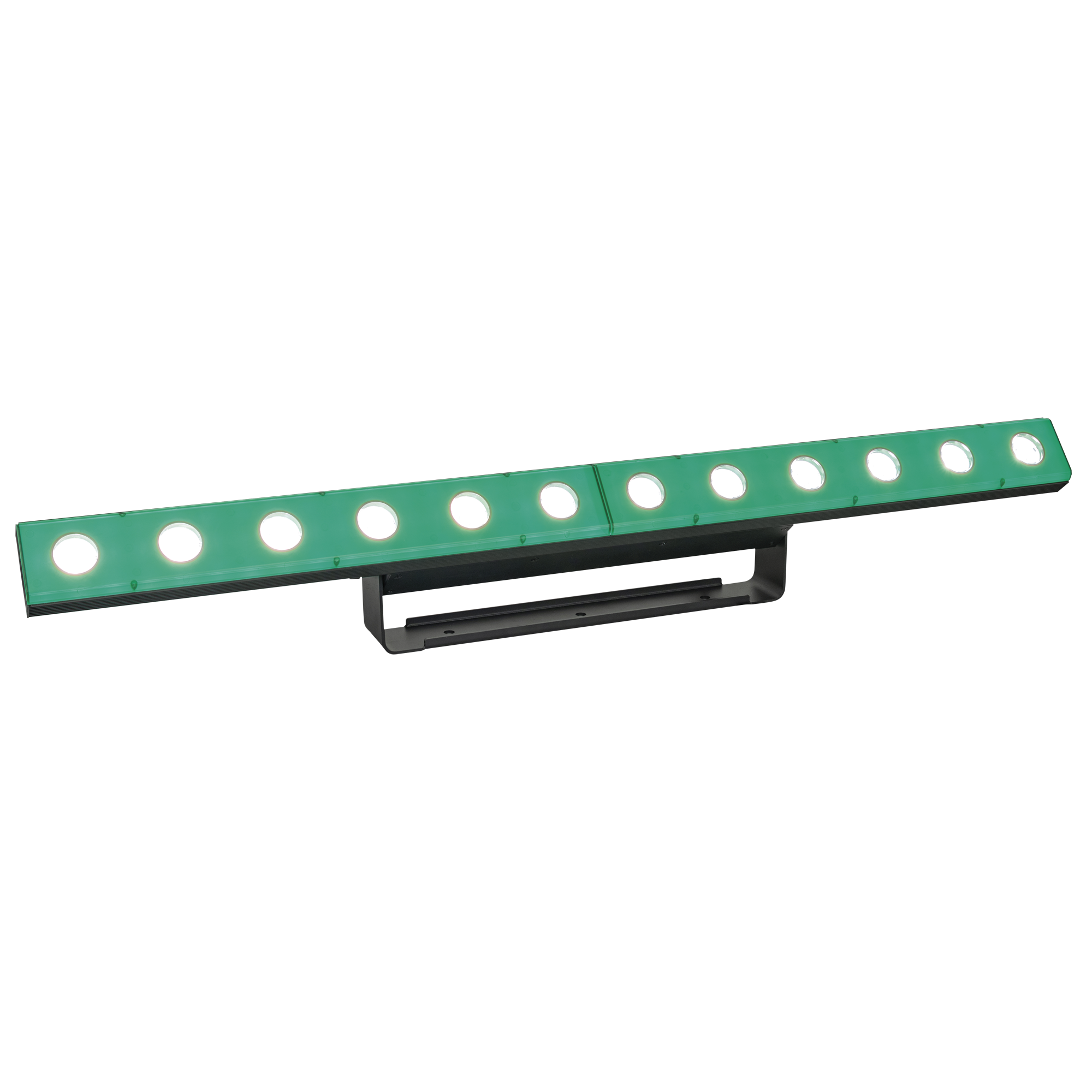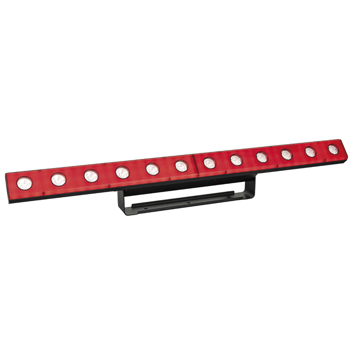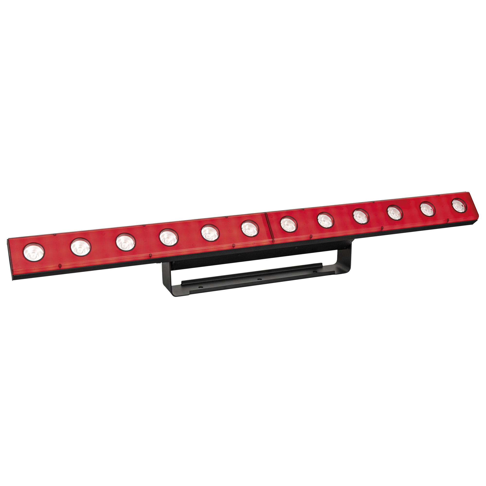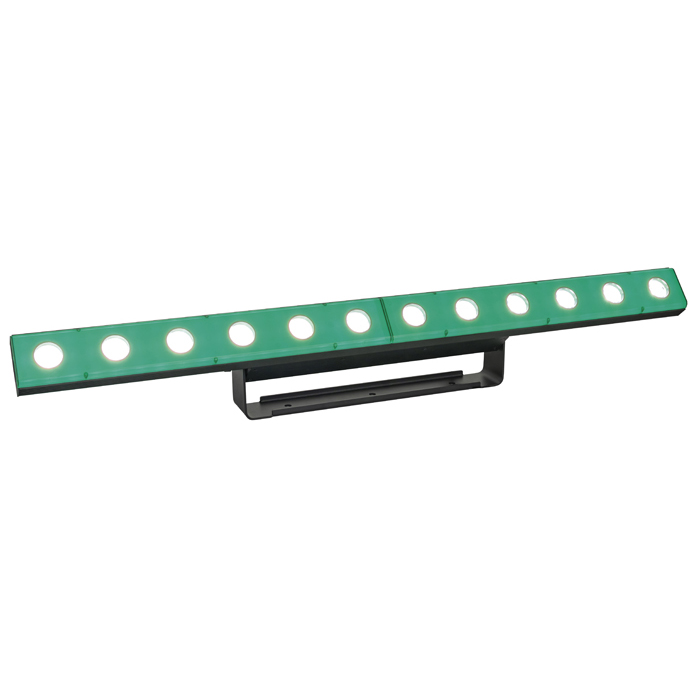 Der Showtec Razor Blaze 12, ist eine 2in1 LED-Matrix-Leiste, die mit 12 Stück 5W warmweißen Hochleistungs-LEDs (4° Abstrahlwinkel) und 96 Stück RGB-LEDs ausgestattet ist.