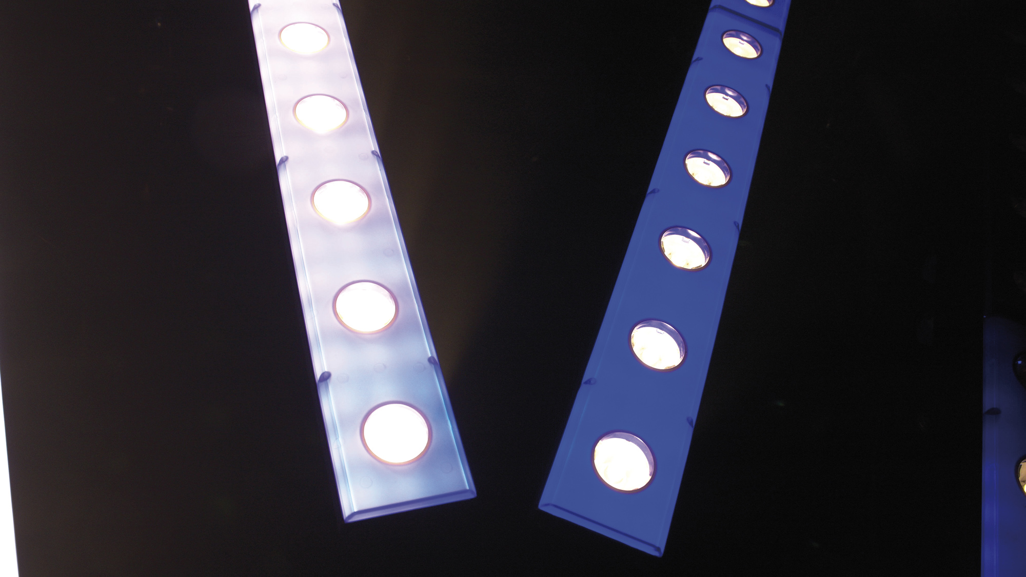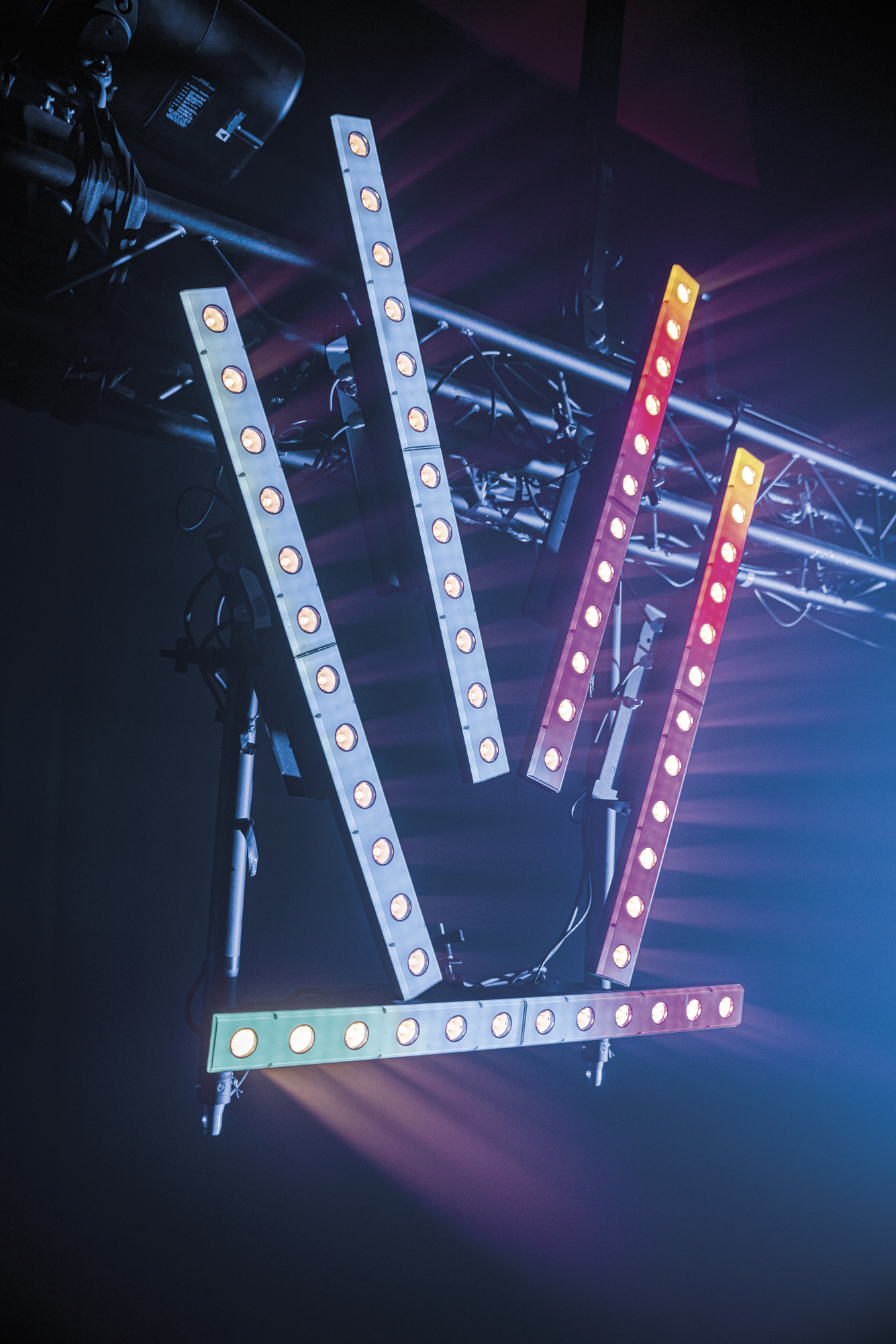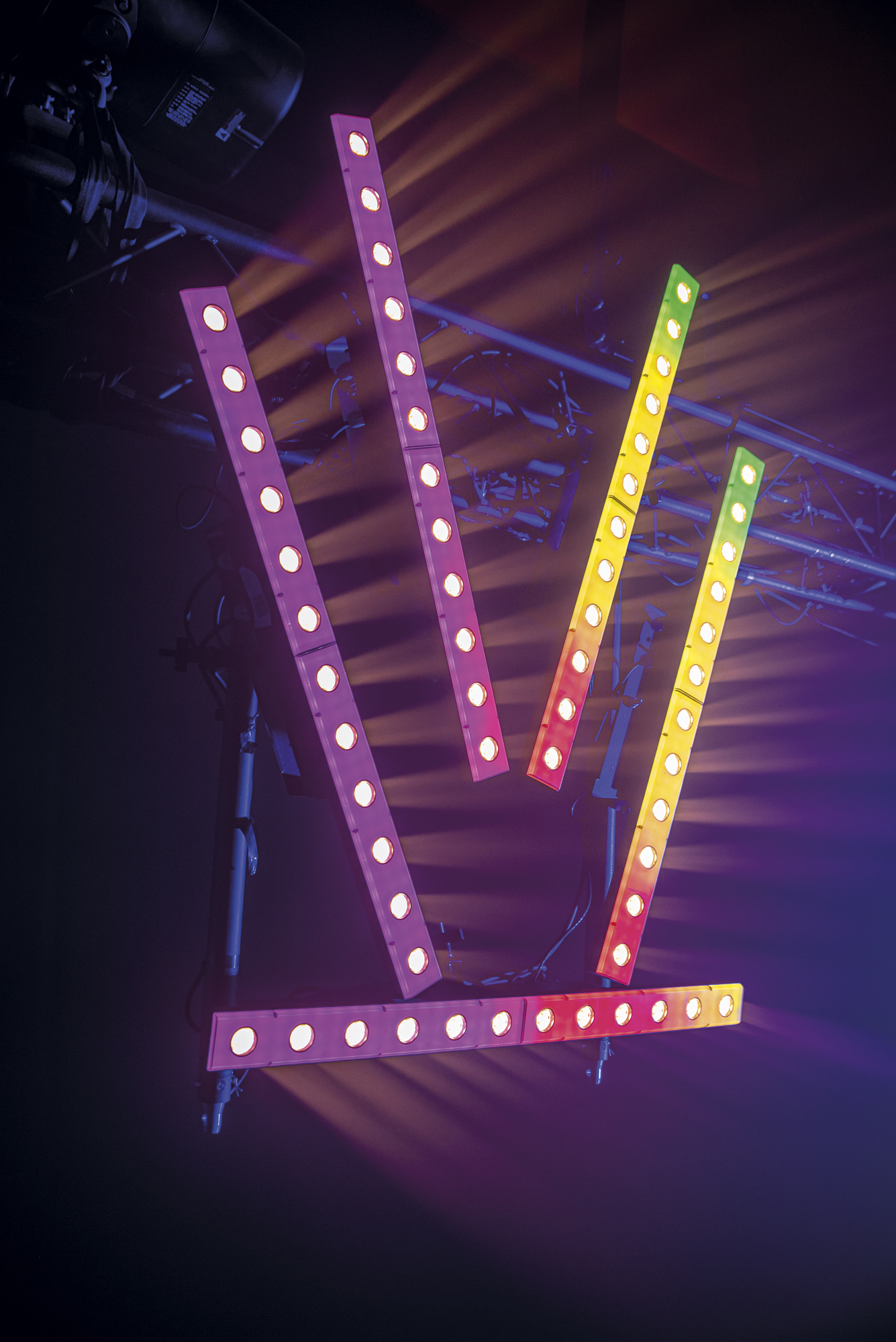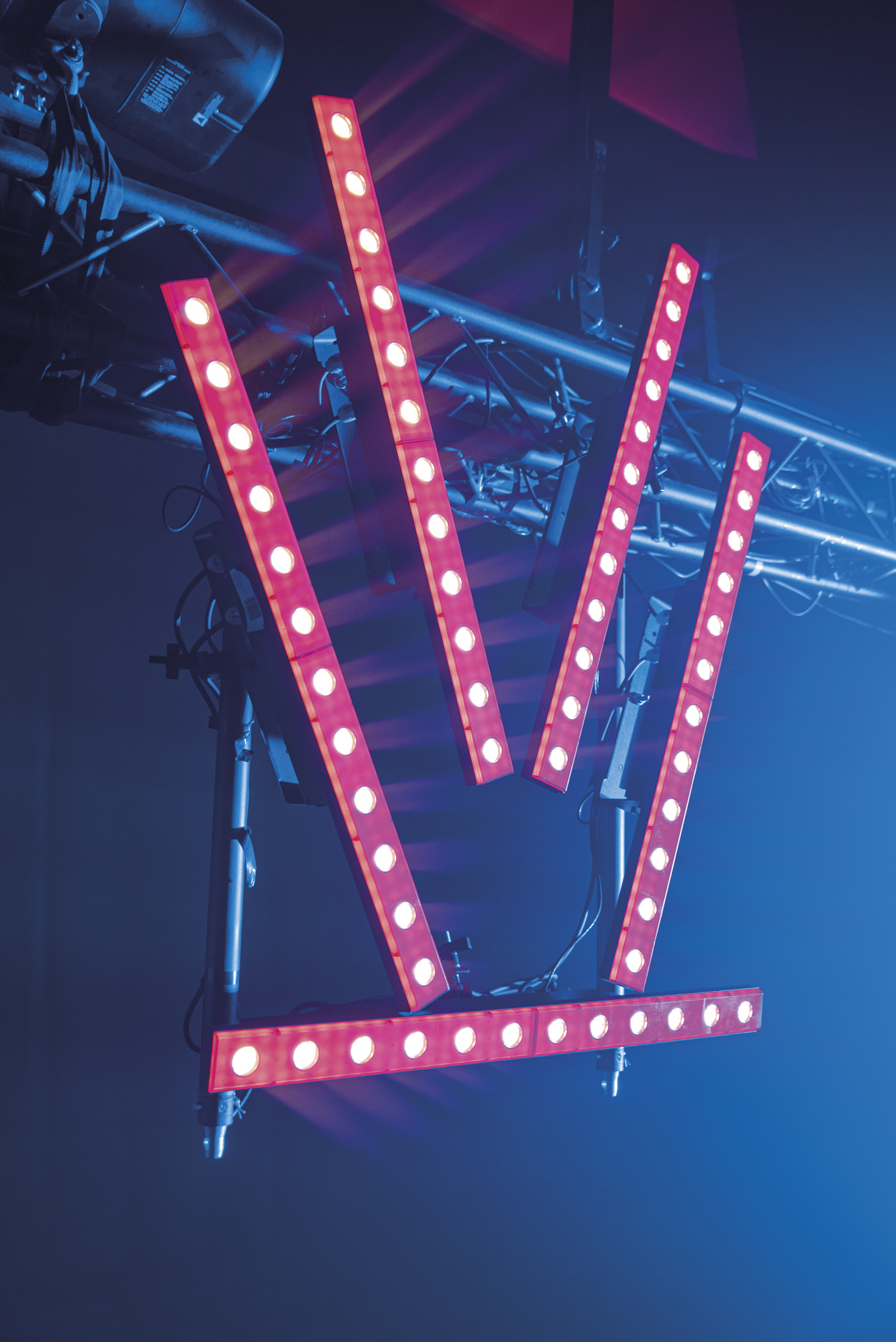 Der Showtec Razor Blaze 12, ist eine 2in1 LED-Matrix-Leiste, die mit 12 Stück 5W warmweißen Hochleistungs-LEDs (4° Abstrahlwinkel) und 96 Stück RGB-LEDs ausgestattet ist.