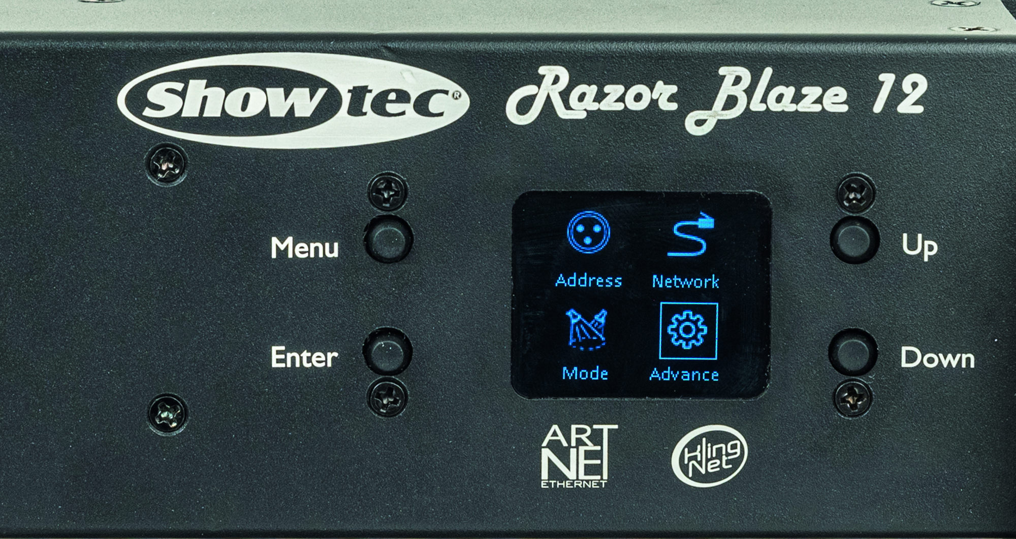 Der Razor Blaze 12 kann über DMX, Art-Net und Klingnet gesteuert werden, kann aber auch als Standalone-Gerät mit eingebauten Programmen verwendet werden. Bei Verwendung mehrerer Geräte können die eingebauten Programme aufgrund der Master/Slave-Funktion synchronisiert werden. Razor Blaze 12 das perfekte Werkzeug für jede Show!