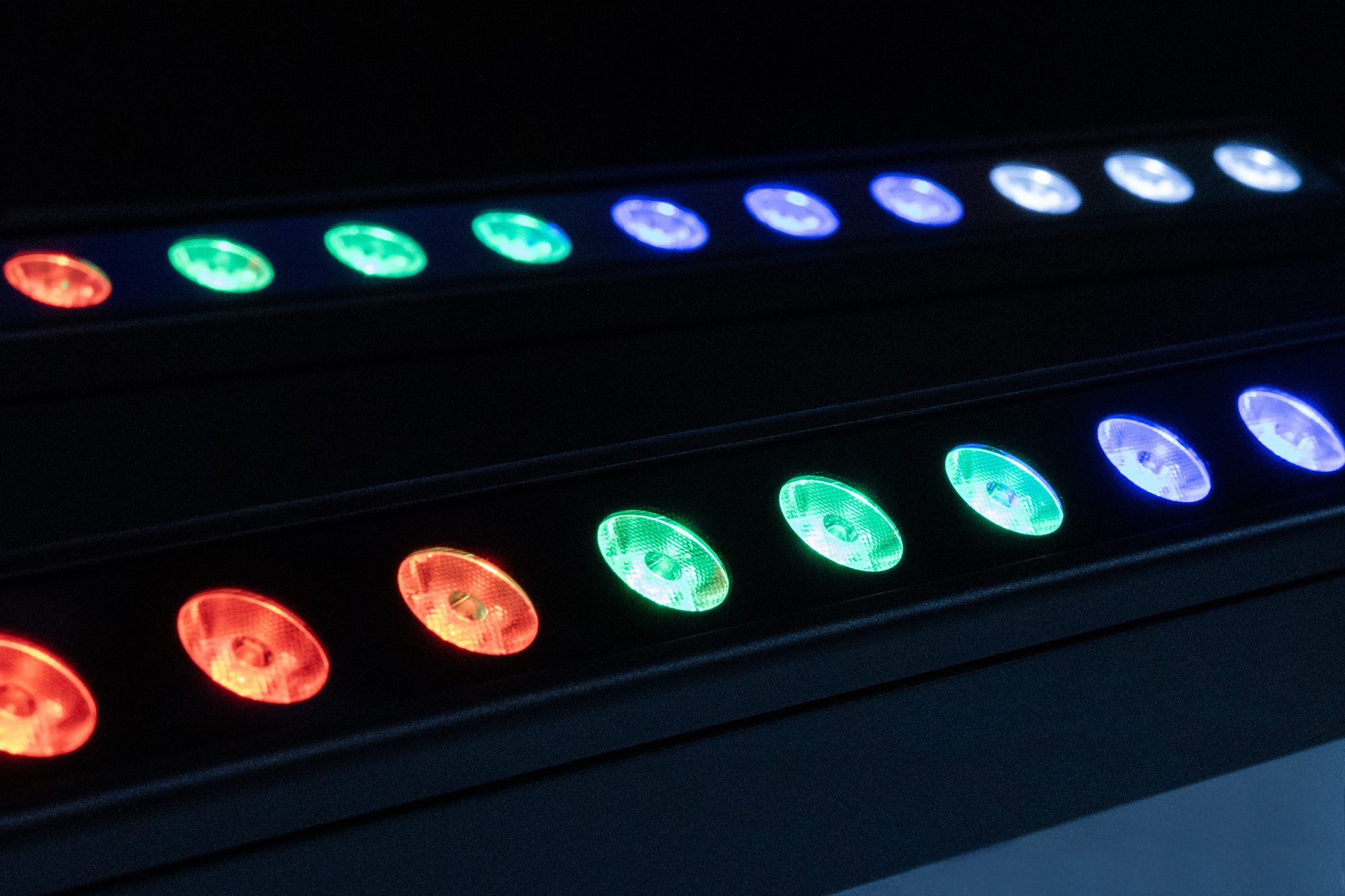 Die Showtec Sonus Bar 8B ist eine batteriebetriebene Lichtleiste mit 24 RGBW-LEDs mit je 2 W. Der Akku hält bei maximaler Leistung 4,5 Stunden, bei typischer Nutzung (d. h. nicht alle LEDs sind zu 100% eingeschaltet) jedoch länger. Die LEDs können in bis zu 8 Abschnitte über bis zu 38 DMX-Kanäle gesteuert werden. Außerdem verfügt sie über einen hochwertigen, klanggesteuerten Modus, der vielseitig und sowohl für Profis als auch für Amateure gleichermaßen nützlich ist. Sie kann auch im Standalone-Modus mit integrierten Programmen, manuellen Einstellungen und im Master/Slave-Modus verwendet werden und unterstützt RDM. Die Showtec Sonus Bar 8B ist konvektionsgekühlt, so dass sie im Betrieb völlig geräuschlos ist.