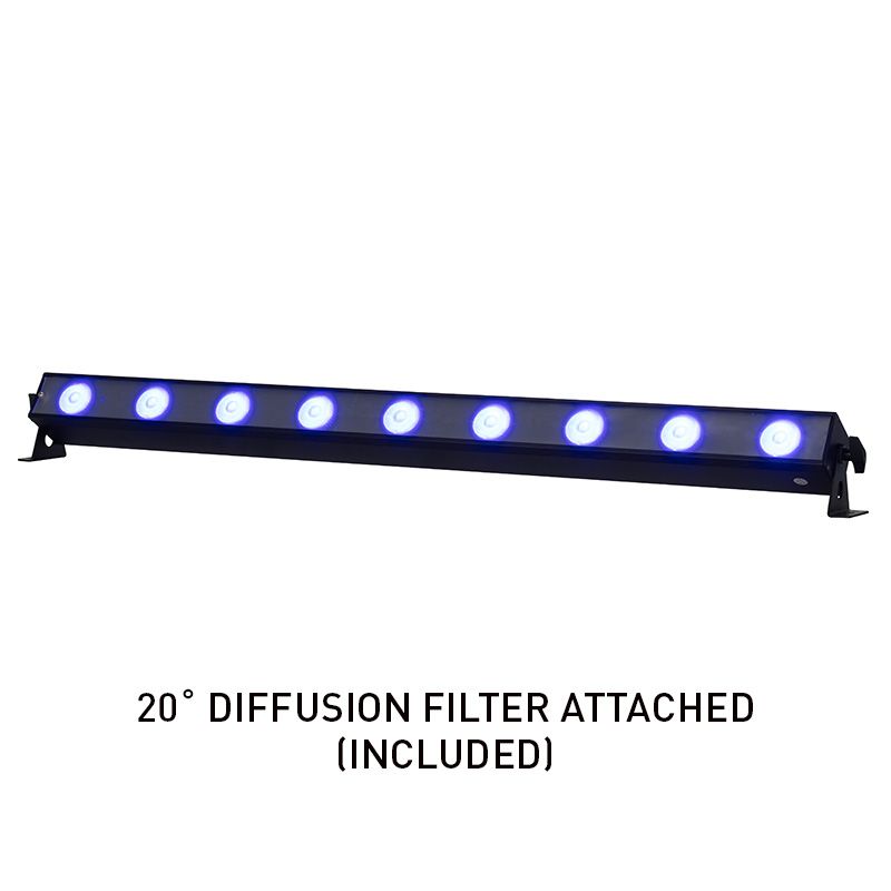 The UBL9H comes complete with an indoor locking power cord, UC-IR24 remote, and a 20° diffusion filter. Expand the beam angle to 1x40-degrees with the UBL912 linear diffusion lens kit (sold separately). Mount it on the ground or truss with the included brackets. Elevate your lighting experience with the ADJ Lighting UBL12H, where innovation meets versatility for unforgettable visual displays.