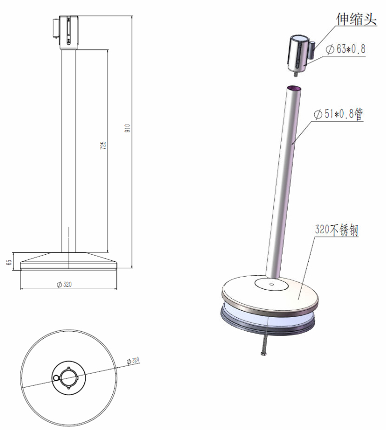 - Maße: Base 320 x 65 mm / Pfosten 51mm x 1mm