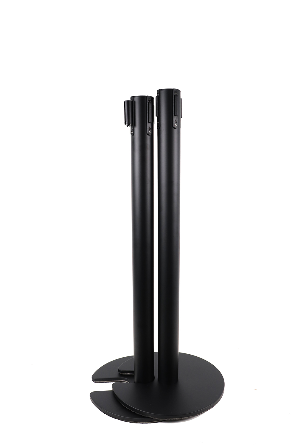 Absperrpfosten schwarz stapelbar mit 2m Gurtband schwarz - Set of 2