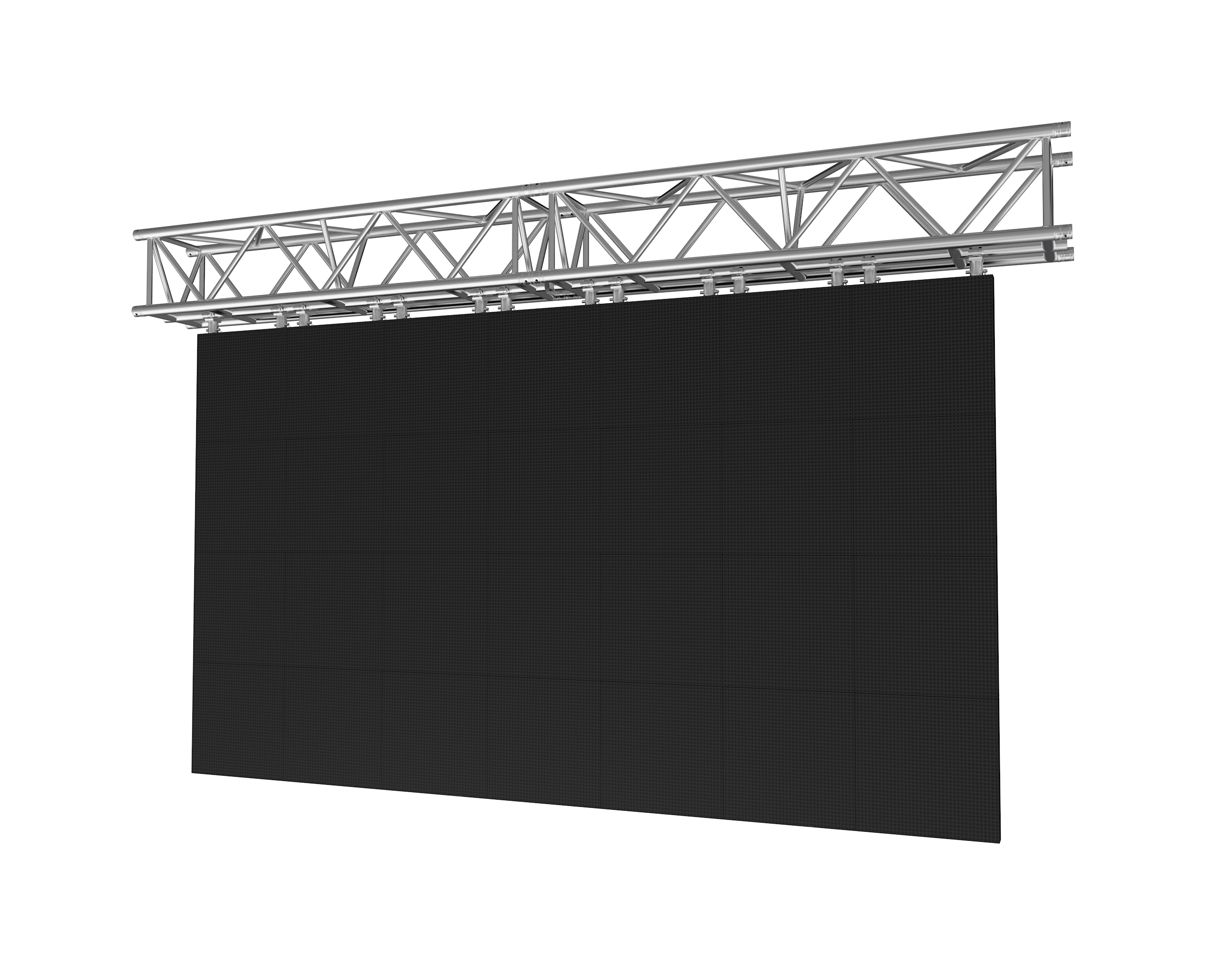 Die F45 Traverse von Global Truss basiert auf der F44P 400mm x 400mm und ist besonders für Anwendungen geeignet bei denen eine zentrierte Aufhängung der LED Leinwand von wesentlicher Bedeutung ist. Auf der Unterseite der Traverse können LED Panels direkt an das mittige Gurtrohr mit Leiterbraces sicher befestigt werden. Dies macht es überflüssig, über die beiden unteren Gurtrohre eine Schlinge zu legen oder diese zu stützen, um einen zentralen Riggingpunkt zu schaff en, wie er normalerweise bei einem quadratischen Träger erforderlich wäre. Des Weiteren schafft das Leiterstil-Bracing mehr freien Hängeraum entlang des Gurtrohrs im Vergleich zu den äußeren Gurten. Da die neue Traverse auf dem F44P Design basiert, lässt sich die F45 mit allen Standard F44P Traversen, auch mit Sleeveblöcken, verbinden und schafft so die Voraussetzung, dass man die neue F45 in bestehende F44P Konstruktionen nahtlos integrieren kann.