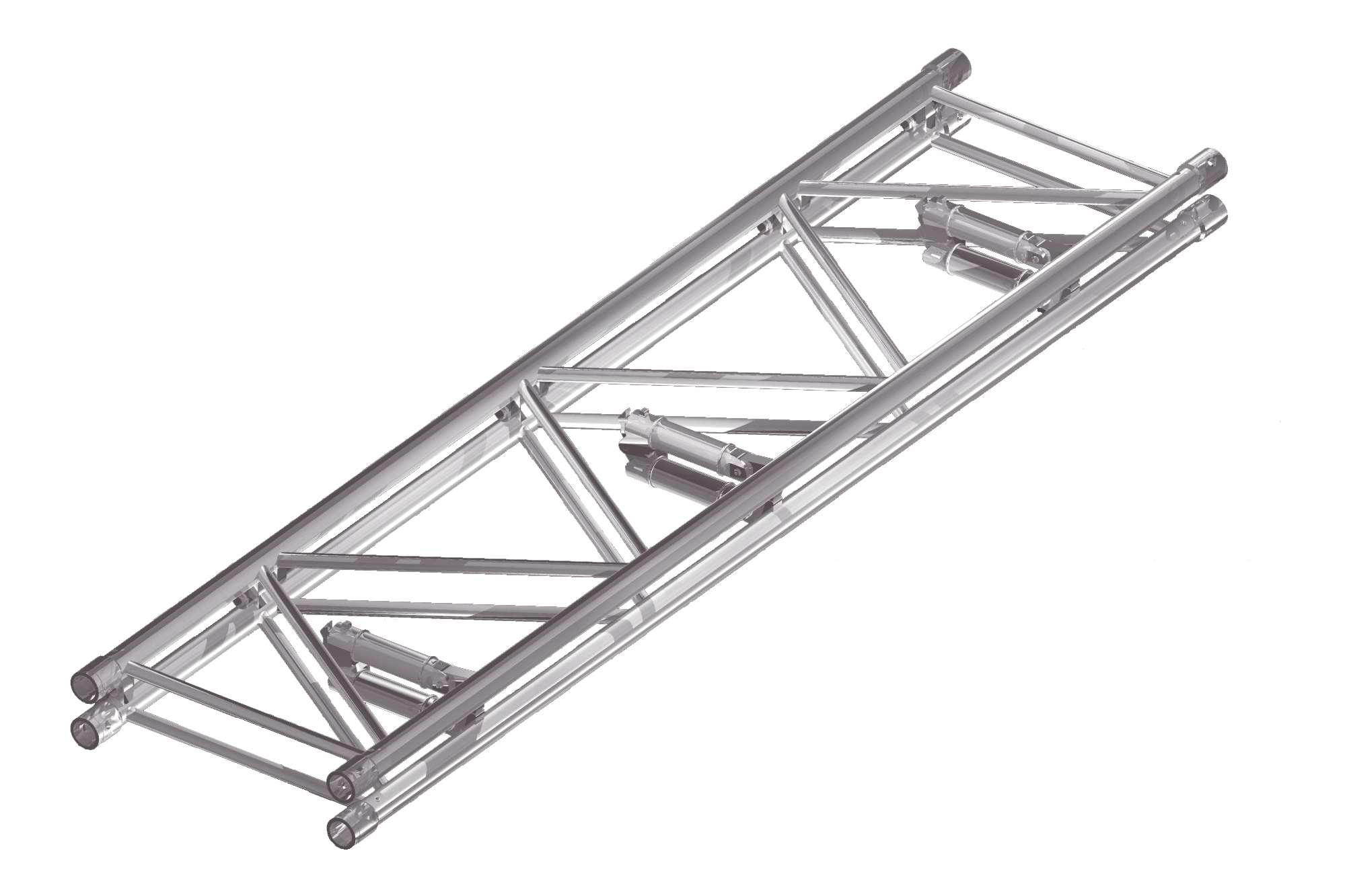 Die F52 Traverse ist aus 50x4mm Gurtrohren und 25x3mm Diagonalbracings aus Aluminium gefertigt. Verbunden werden die Traversen mit speziellen konischen Verbindern (60mm), welche im Lieferumfang enthalten sind. Wie alle Global Truss Traversen lässt sich auch diese in beliebigen Farben pulverbeschichten.