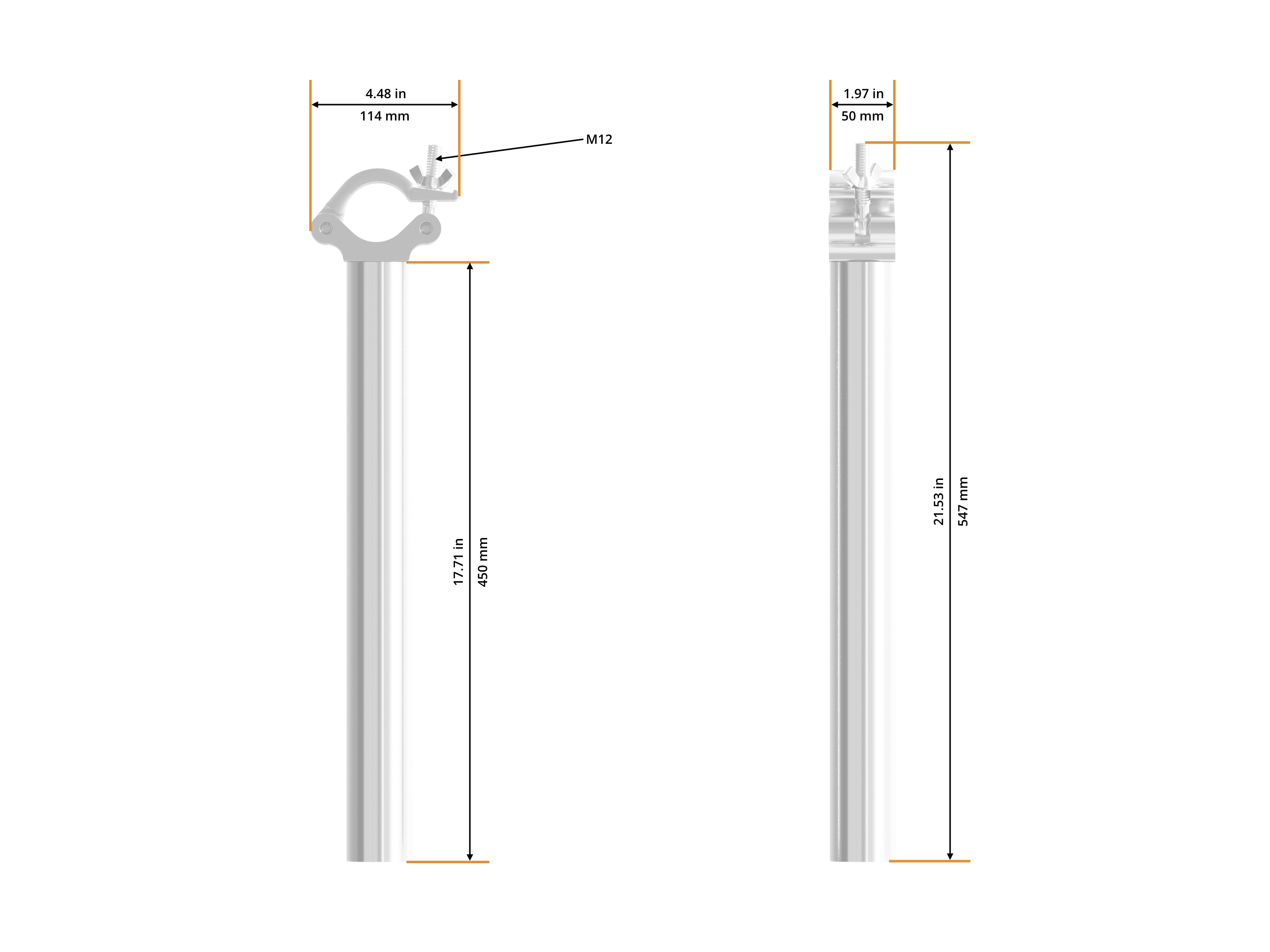 Der Boom Arm 45 dient als flexibler Auslegearm um Scheinwerfer an einem senkrecht verlaufendem Rohr abhängen zu können. Der Ausleger hat eine Länge von 45cm ab dem Coupler.
