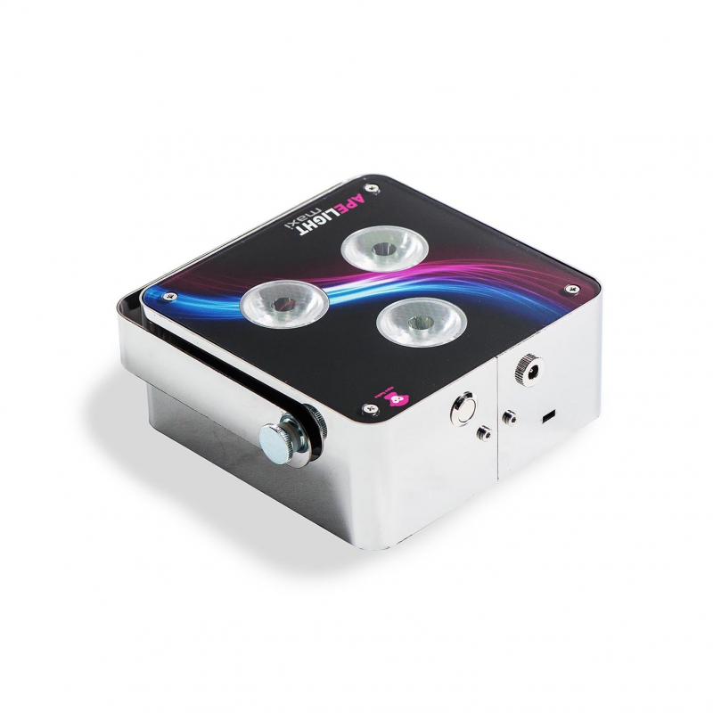 Das ApeLight maxi ist ein LED-Scheinwerfer mit eingebautem Akku. Die Akkuleuchte ist steuerbar mit der Ape Labs 2,4 GHz Fernbedienung oder per wireless DMX mit dem W-APP Bluetooth DMX Transceiver oder dem W-APE wireless DMX Transceiver. Mit dem neuen W-APP Bluetooth DMX Transceiver ist zusätzlich die innovative Steuerung über die Ape Labs App möglich, welche für Android und iOS verfügbar ist.